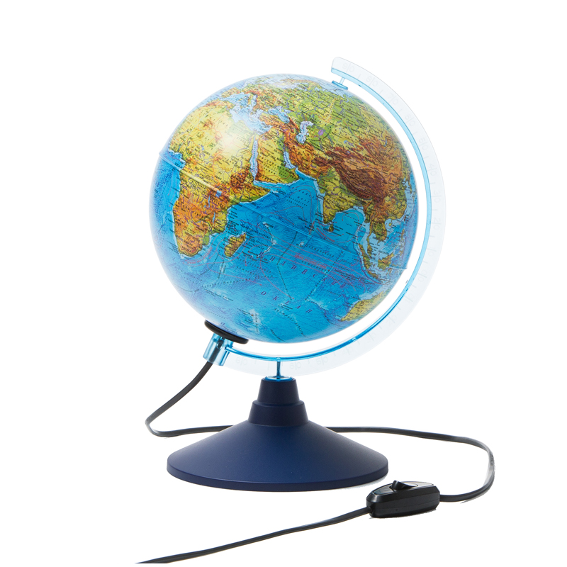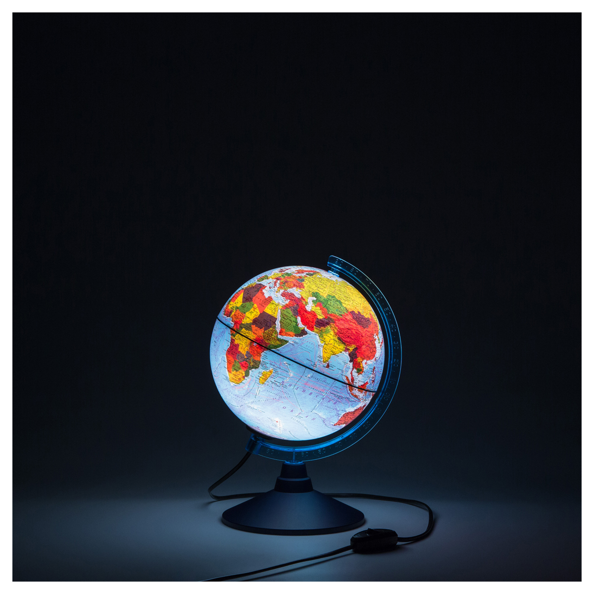Глобус включает в себя две карты: с выключенной подсветкой вы видите физическую карту мира, при включении подсветки – политическую карту мира. Это делает глобус практичным и долговечным в использовании – пригодится школьнику для изучения окружающего мира, географии, истории и экономики.