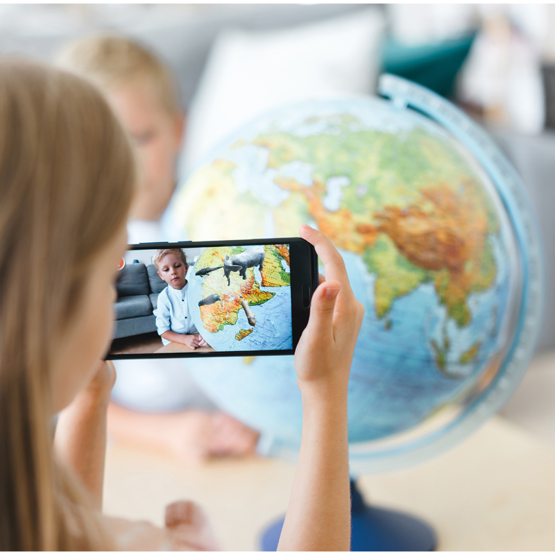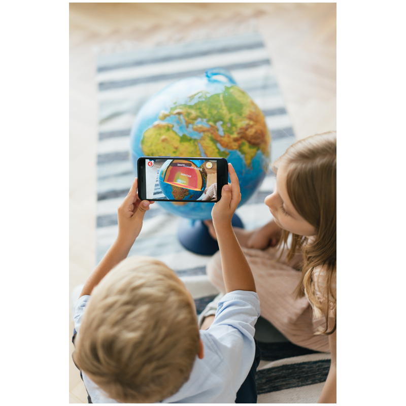 А когда наскучит рассматривать глобус самому, можно скачать на свой смартфон или планшет бесплатное приложение IQ Globe, и совершить настоящее путешествие по нашей планете и бескрайнему космосу вместе с героями интерактивного глобуса любознательными Аришей, Тёмой и Митей и их питомцами Астором и Ириской. С помощью функции дополненной реальности вы сможете полететь в космос и рассмотреть поближе каждую из планет Солнечной системы, попасть в любую точку земного шара, познакомиться с необычными животными и растениями, покрутить со всех сторон мировые достопримечательности и это далеко не все! Герои интерактивного глобуса будут сопровождать вас на всём пути и рассказывать интересные факты о каждом заинтересовавшем объекте. Все, что понадобится: