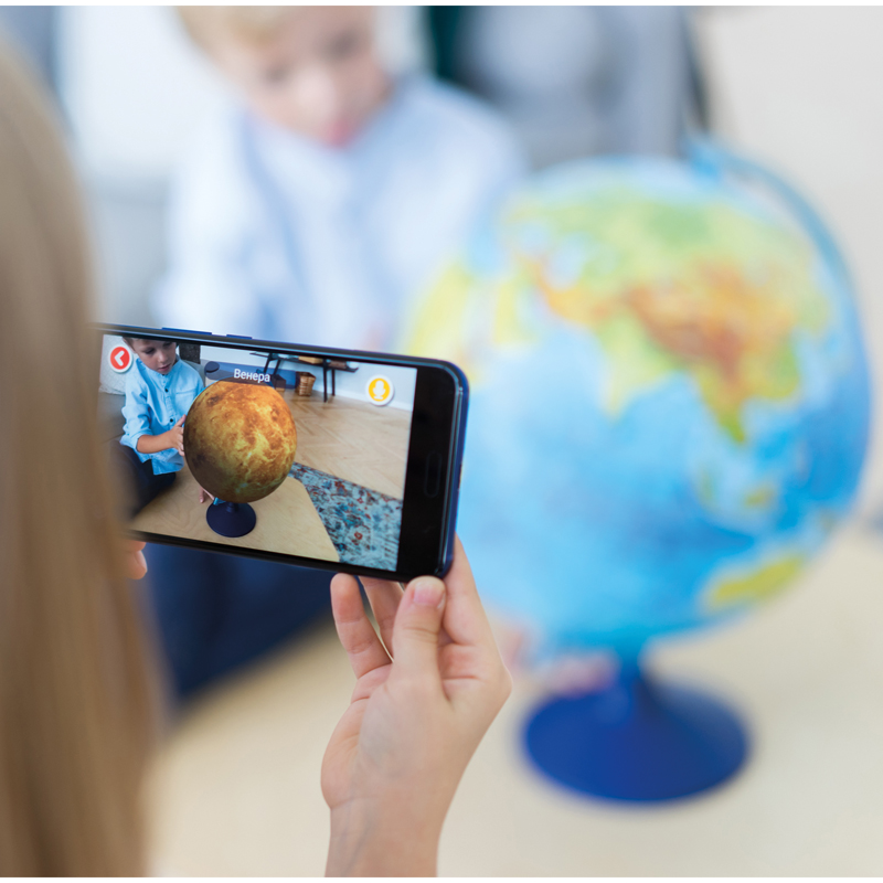• Навести экран гаджета на достаточное расстояние от глобуса и задержать его до появления эффекта дополненной реальности