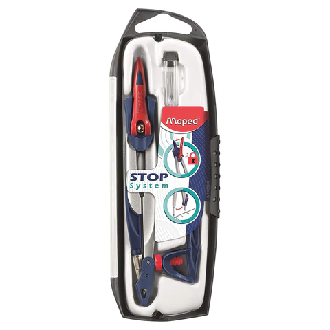 Готовальня MAPED "Stop System" идеально подходит школьникам средней школы и студентам для чертёжных работ.