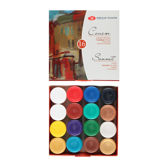 Гуашь художественная, 20 мл, цвет 16 цветов, картонная коробка, Сонет, Невская палитра