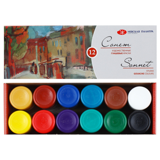 Гуашь художественная, 40 мл, цвет 12 цветов, банка, Сонет, Невская палитра
