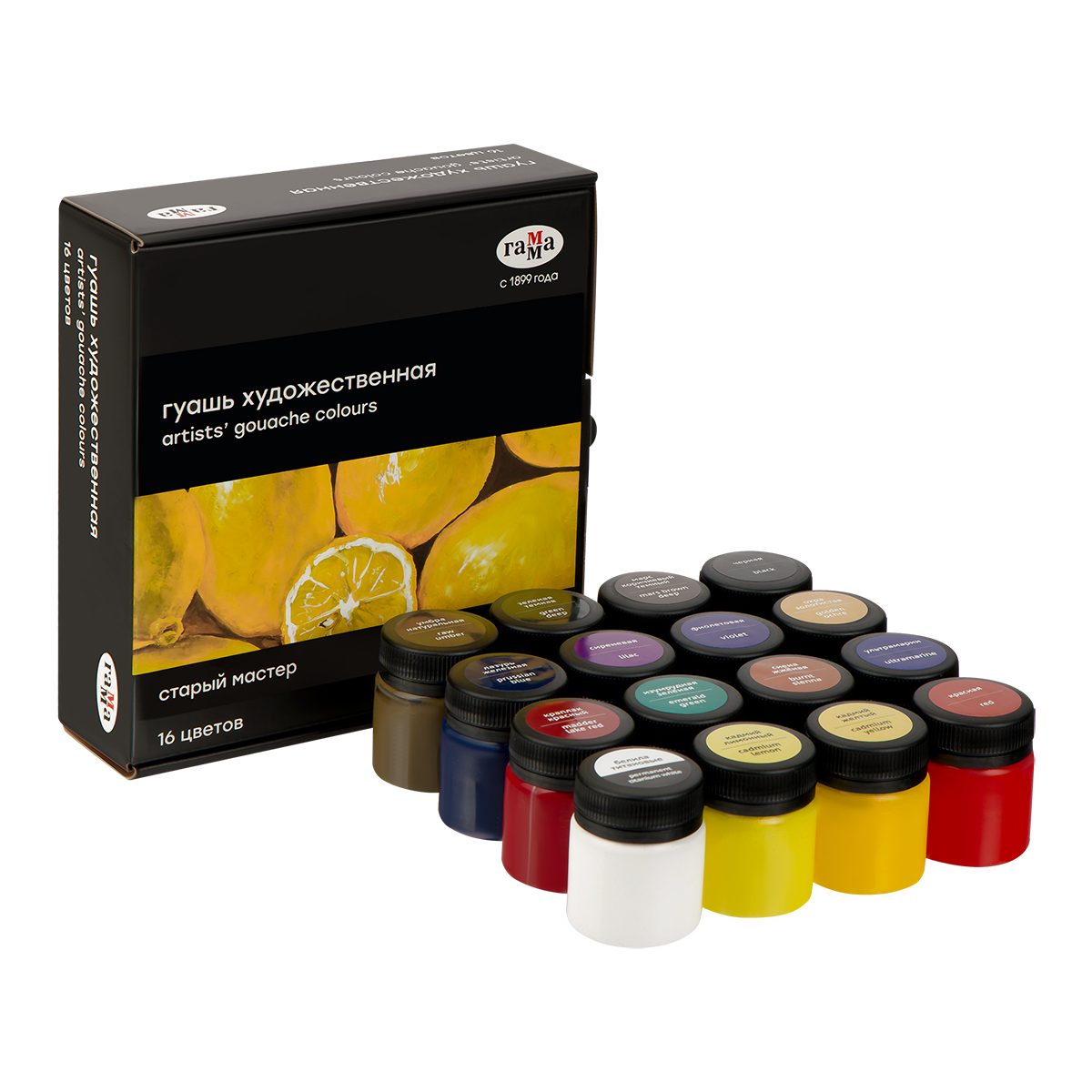 Гуашь художественная "Гамма" серии "Старый мастер" имеет уникальную рецептуру, разработанную в собственной исследовательской лаборатории завода совместно с художниками. Краски изготавливается из тонкодиспесных пигментов, связующего, в состав которого входит раствор растительного клея - гуммиарабика высшей степени очистки. Краска легко наносится на поверхность, благодаря специальным добавкам сохраняет яркость цвета после высыхания, создавая плотный бархатистый слой. Гуашь обладает высокой укрывистостью, отличной разносимостью, а также хорошо смешивается между собой. Большая часть цветов имеет самый высокий показатель светостойкости.
