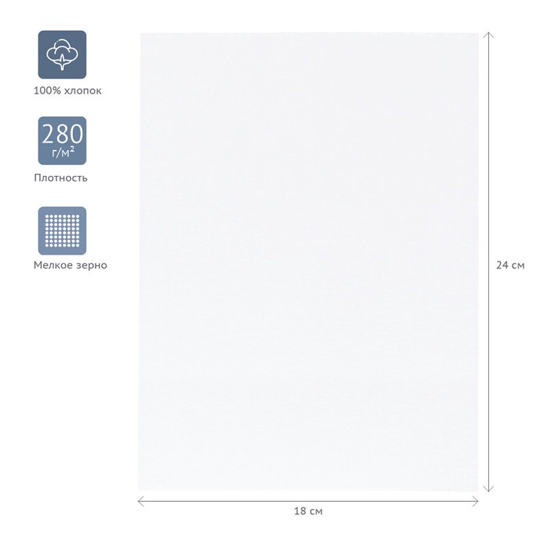Хлопковый холст ГАММА серии «Студия», грунтованный на картоне, подойдёт для живописи масляными, акриловыми, темперными и гуашевыми красками. Основа – натуральное полотно, 100% хлопок, мелкое зерно. Холст прямоугольной формы плотностью 280 г/м2, размер – 18*24 см. Холст имеет акриловый грунт. Изготовлен без использования кислот.