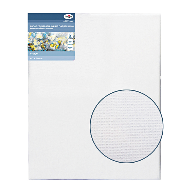 Хлопковый холст на подрамнике ГАММА серии «Студия», грунтованный, подойдёт для живописи масляными, акриловыми, темперными и гуашевыми красками. Основа – натуральное полотно, 100% хлопок, мелкое зерно. Холст прямоугольной формы плотностью 280 г/м2, размер – 40*50 см. Холст покрыт акриловым грунтом, а подрамник выполнен из сосны. Изготовлен без использования кислот.