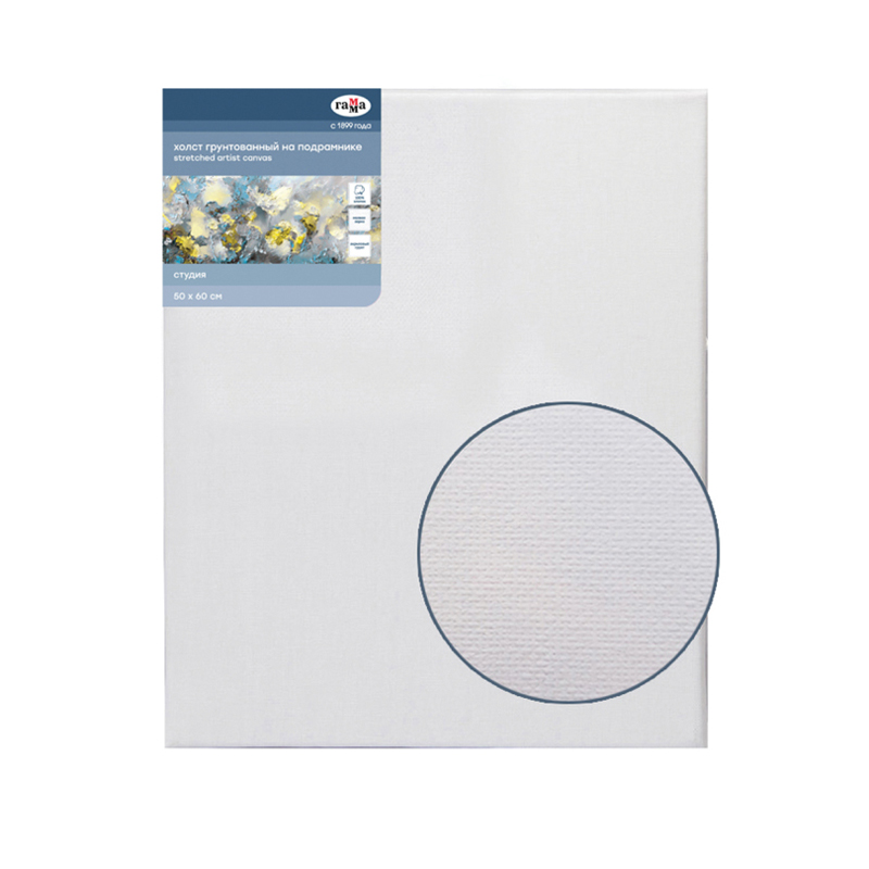 Хлопковый холст на подрамнике ГАММА серии «Студия», грунтованный, подойдёт для живописи масляными, акриловыми, темперными и гуашевыми красками. Основа – натуральное полотно, 100% хлопок, мелкое зерно. Холст прямоугольной формы плотностью 280 г/м2, размер – 50*60 см. Холст покрыт акриловым грунтом, а подрамник выполнен из сосны. Изготовлен без использования кислот.