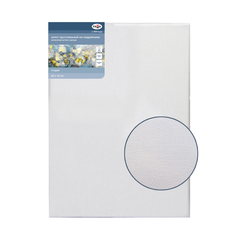 Хлопковый холст на подрамнике ГАММА серии «Студия», грунтованный, подойдёт для живописи масляными, акриловыми, темперными и гуашевыми красками. Основа – натуральное полотно, 100% хлопок, мелкое зерно. Холст прямоугольной формы плотностью 280 г/м2, размер – 50*70 см. Холст покрыт акриловым грунтом, а подрамник выполнен из сосны. Изготовлен без использования кислот.