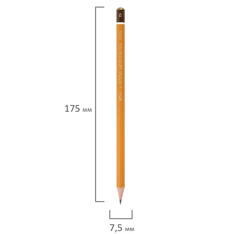 Карандаш длиной 175 мм поставляется заточенным, без ластика. Грифель диаметром 2 мм и твердостью 7B.