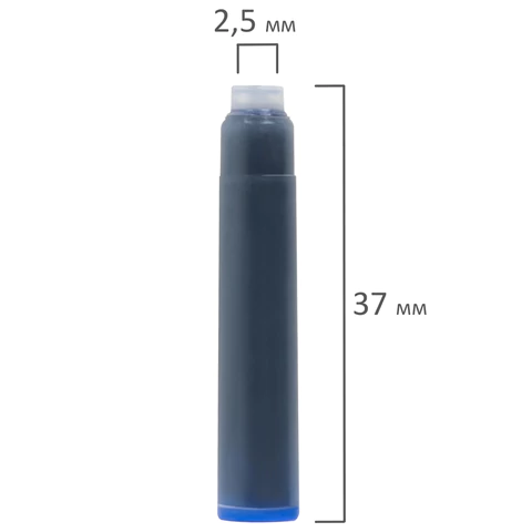 Комплект из 10 чернильных картриджей евростандарта. Картриджи универсальные, совместимы со многими перьевыми ручками. Цвет чернил – синий.