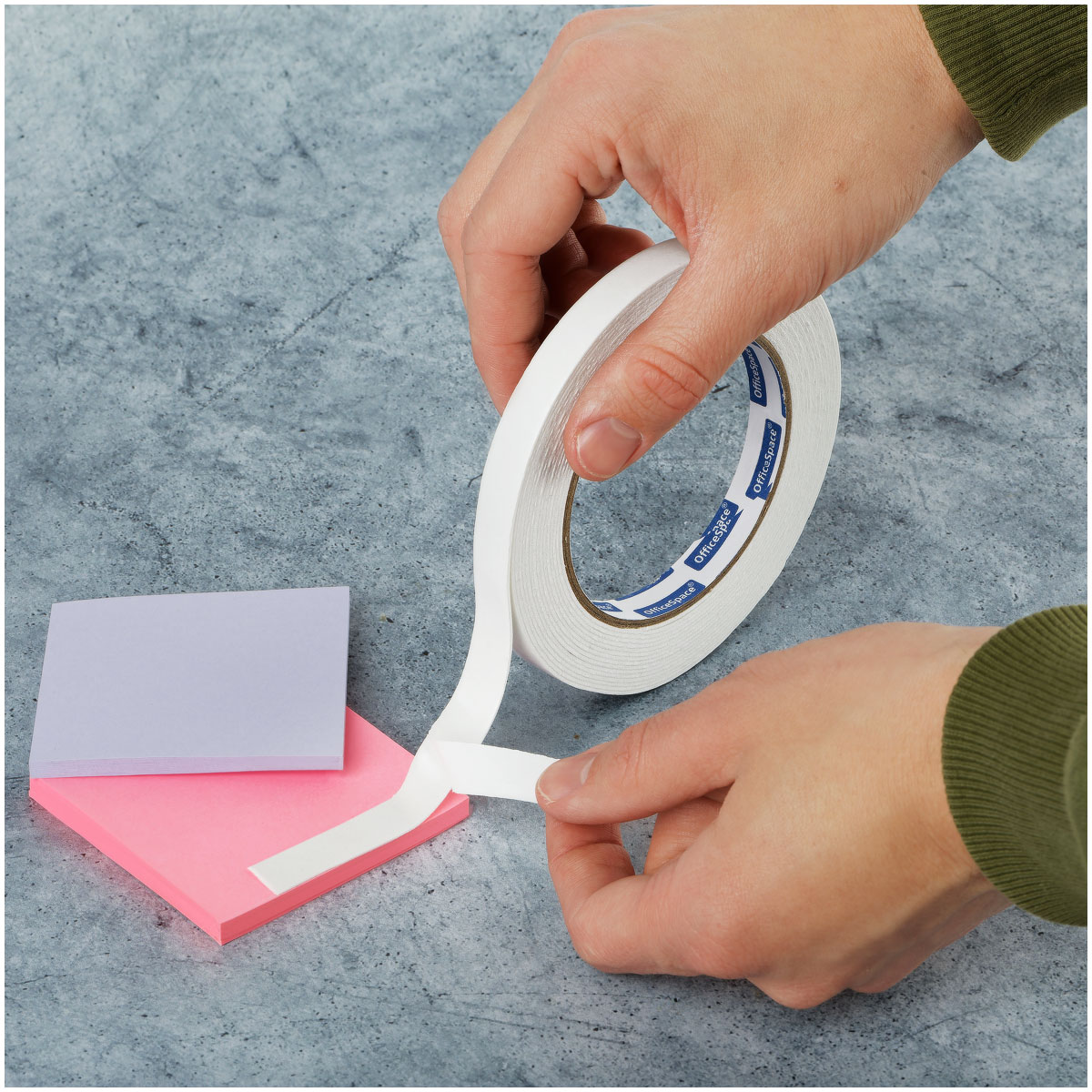 Двусторонняя клейкая лента OfficeSpace шириной 12 мм и плотностью 1000 мкм на вспененной основе является идеальным средством для быстрого и надежного соединения различных по текстуре и составу поверхностей. Благодаря толщине 1мм, высокой плотности и эластичности эта лента компенсирует все неровности на поверхности склеиваемых изделий, обеспечивая полный контакт. Длина намотки – 5 метров. Диаметр втулки составляет 76 мм.