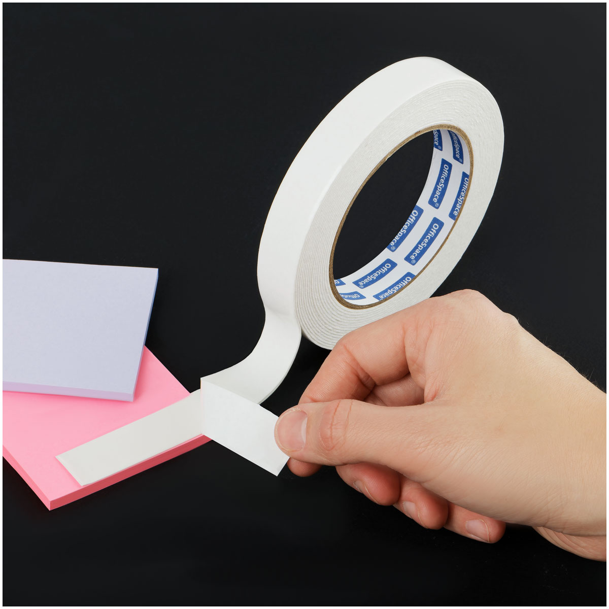 Двусторонняя клейкая лента OfficeSpace шириной 19 мм и плотностью 1000 мкм на вспененной основе является идеальным средством для быстрого и надежного соединения различных по текстуре и составу поверхностей. Благодаря толщине 1мм, высокой плотности и эластичности эта лента компенсирует все неровности на поверхности склеиваемых изделий, обеспечивая полный контакт. Длина намотки – 5 метров. Диаметр втулки составляет 76 мм.