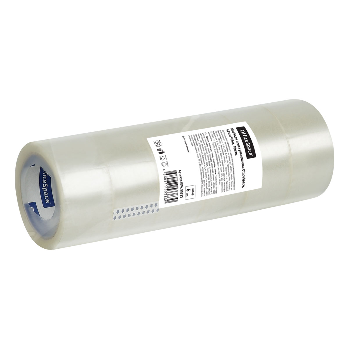 Упаковочная клейкая лента Office Space идеально подходит для упаковки, фиксации и декоративных целей. Лента шириной 48 мм и длиной 66 метров плотностью 40 мкм. В упаковке 6 штук - общая длина 396 метров. Отличается высокой адгезией клея и стойкостью к разрыву.