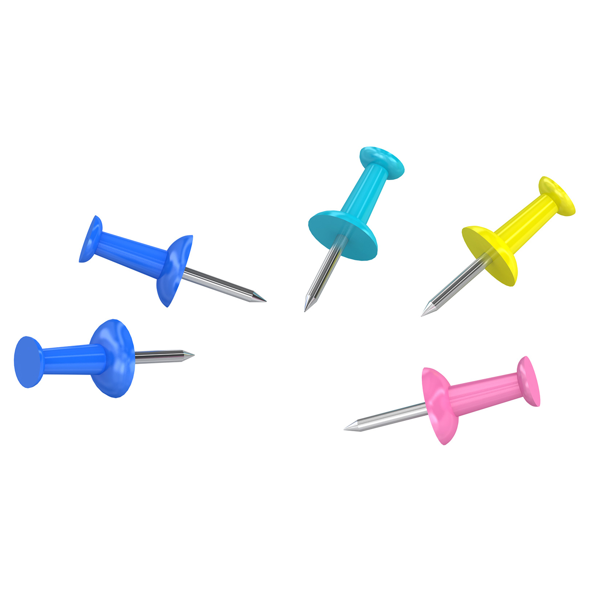 Стильные силовые кнопки Berlingo, выполненные в нежных пастельных цветах, предназначены для создания отметок на картах, графиках и для крепления информации к пробковым доскам. Длина иглы – 10 мм. Упакованы по 50 штук в ПВХ коробочку с европодвесом 23*9 см.