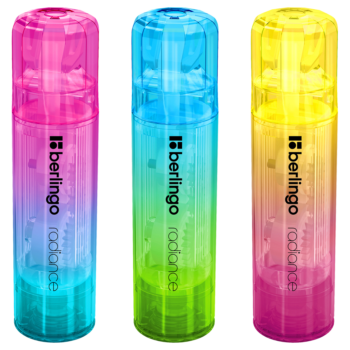 Корректирующая лента "Radiance". Дизайн корпуса выполнен в ярких сочетаниях цветов ассорти в стиле градиент. Подходит для исправления машинописного или рукописного текста. Плотное и точное покрытие, не требует времени на высыхание. Имеет подвижный наконечник, благодаря которому лента может использоваться под любым углом. Стабилизатор позволяет добиться ровной линии. Промежуточная упаковка - дисплей-бокс 18шт.
