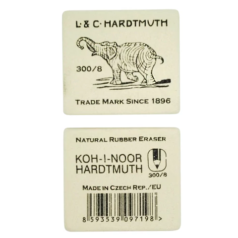 Известный ластик со слоном KOH-I-NOOR. Изготовлен из каучука, универсален. Отлично стирает линии графитовых карандашей любой твердости.