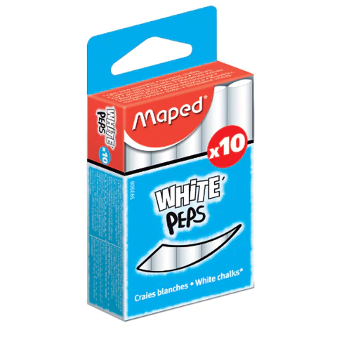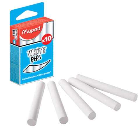 Белые круглые мелки высшего качества MAPED "White'Peps". Уникальная формула "без пыли": мелки не крошатся, не пачкают руки и одежду.