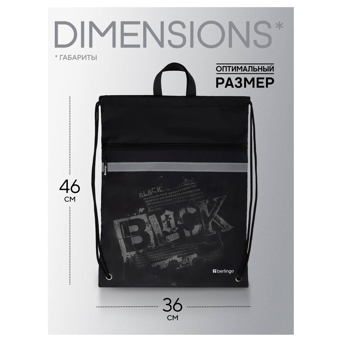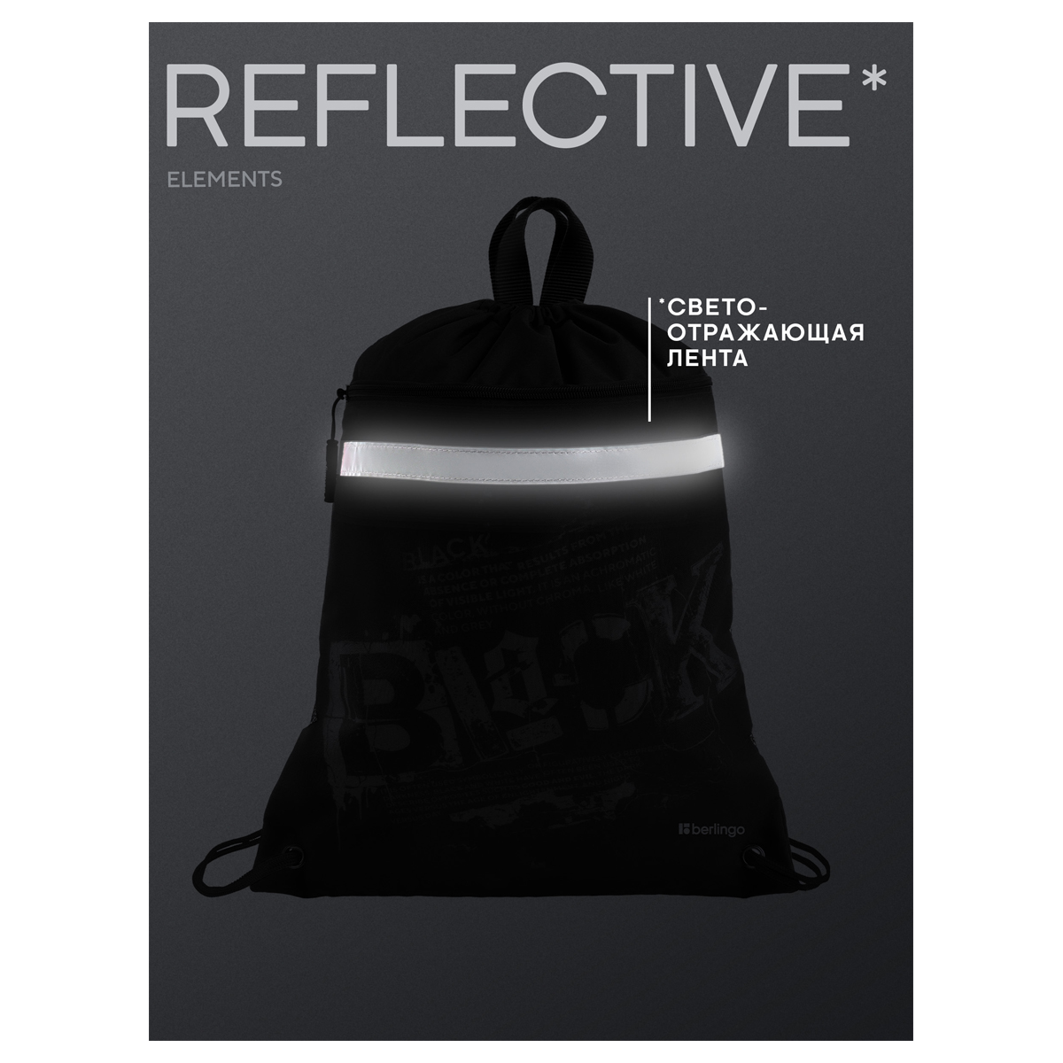 Вместительный мешок для обуви Berlingo оснащён прочными шнурками, светоотражающей полосой, вентиляционной сеточкой, передним карманом на молнии и петлей для подвешивания, а также имеет бирку для подписи имени, класса и телефона. Размер изделия 360*460 мм. Модель изготовлена из плотного полиэстера. Световозвращающие элементы обезопасят ребенка в тёмное время суток. Мешок идеален как для зимней обуви, так и для спортивной экипировки. Индивидуальная упаковка - пакет.