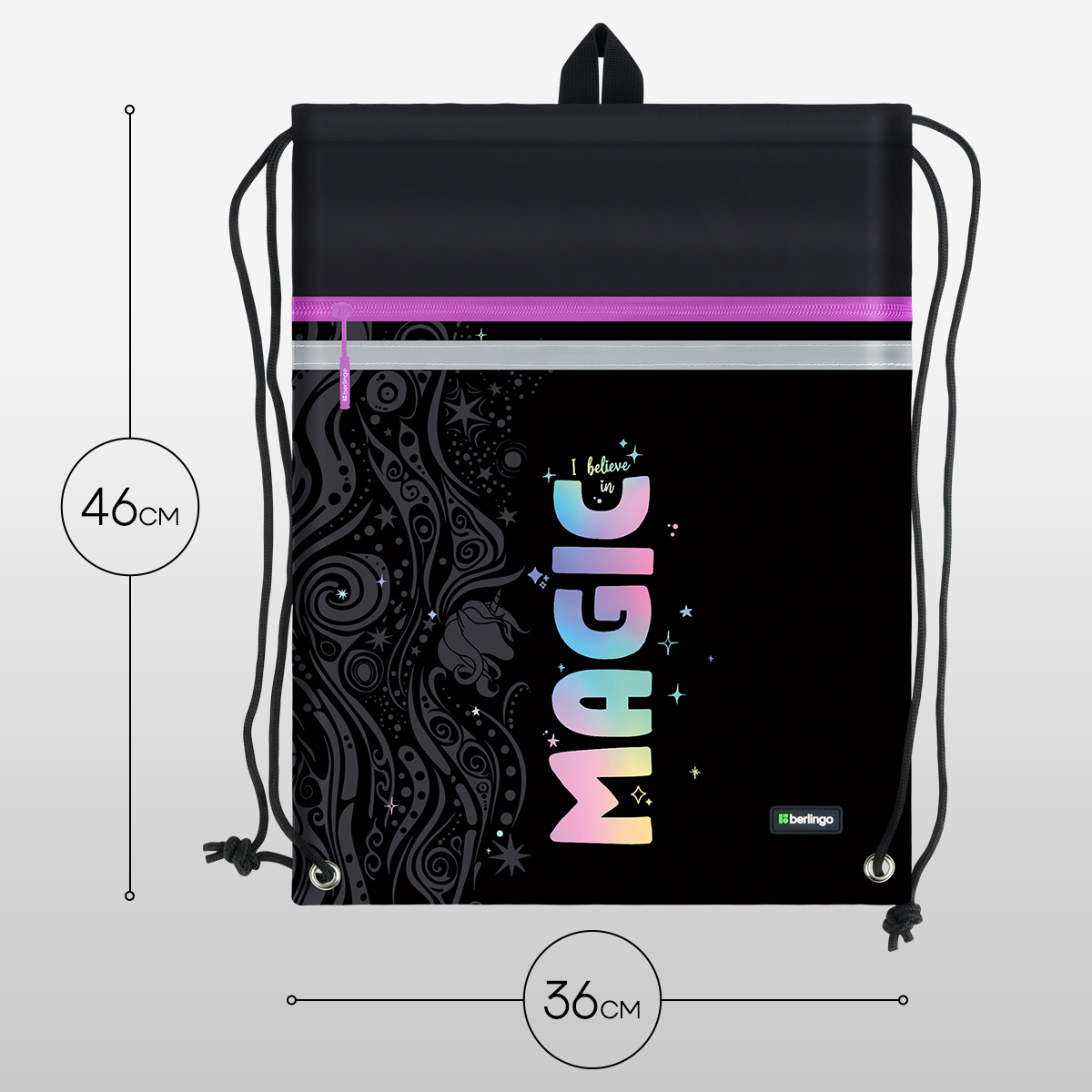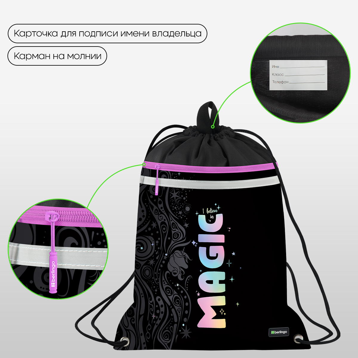 Мешок для обуви 1 отделение Berlingo "Purple Magic", 360*460мм, вентиляционная сеточка , светоотражающая лента, карман на молнии