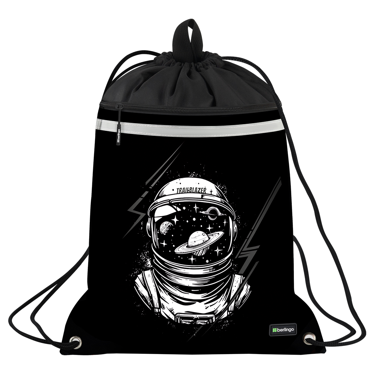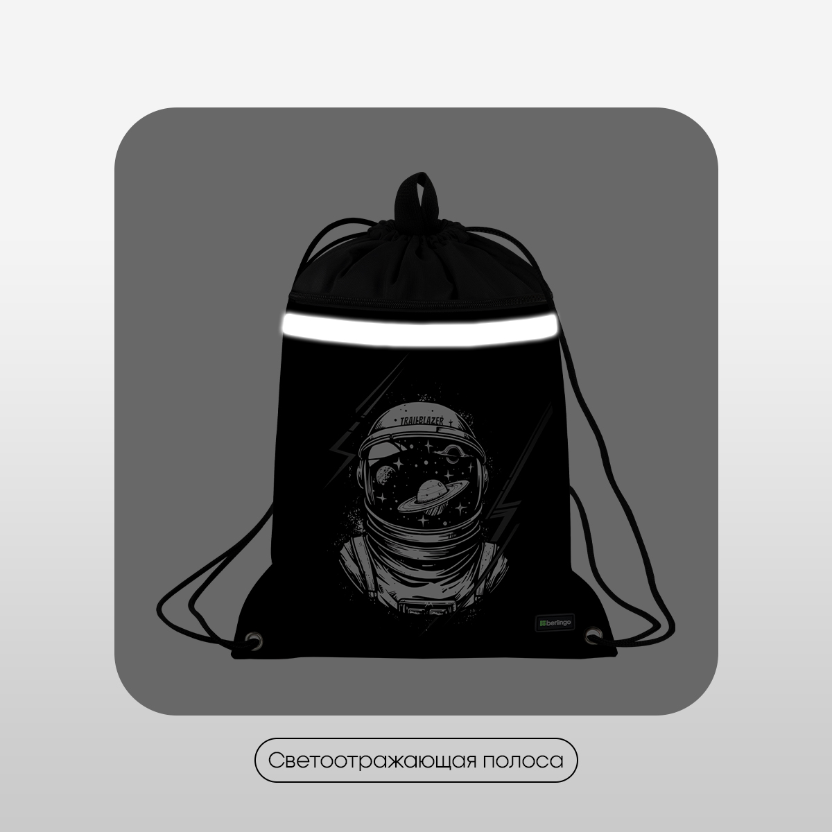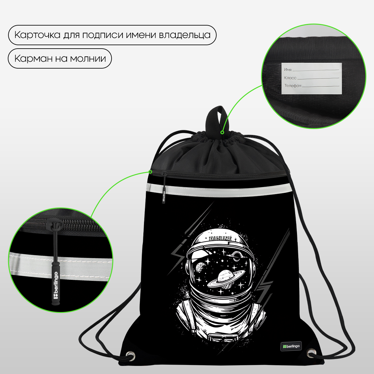 Вместительный мешок для обуви Berlingo оснащён прочными шнурками, светоотражающей полосой, вентиляционной сеточкой, передним карманом на молнии и петлей для подвешивания, а также имеет бирку для подписи имени, класса и телефона. Размер изделия 360*460 мм. Модель изготовлена из плотного полиэстера. Световозвращающие элементы обезопасят ребенка в тёмное время суток. Мешок идеален как для зимней обуви, так и для спортивной экипировки. Индивидуальная упаковка - пакет.