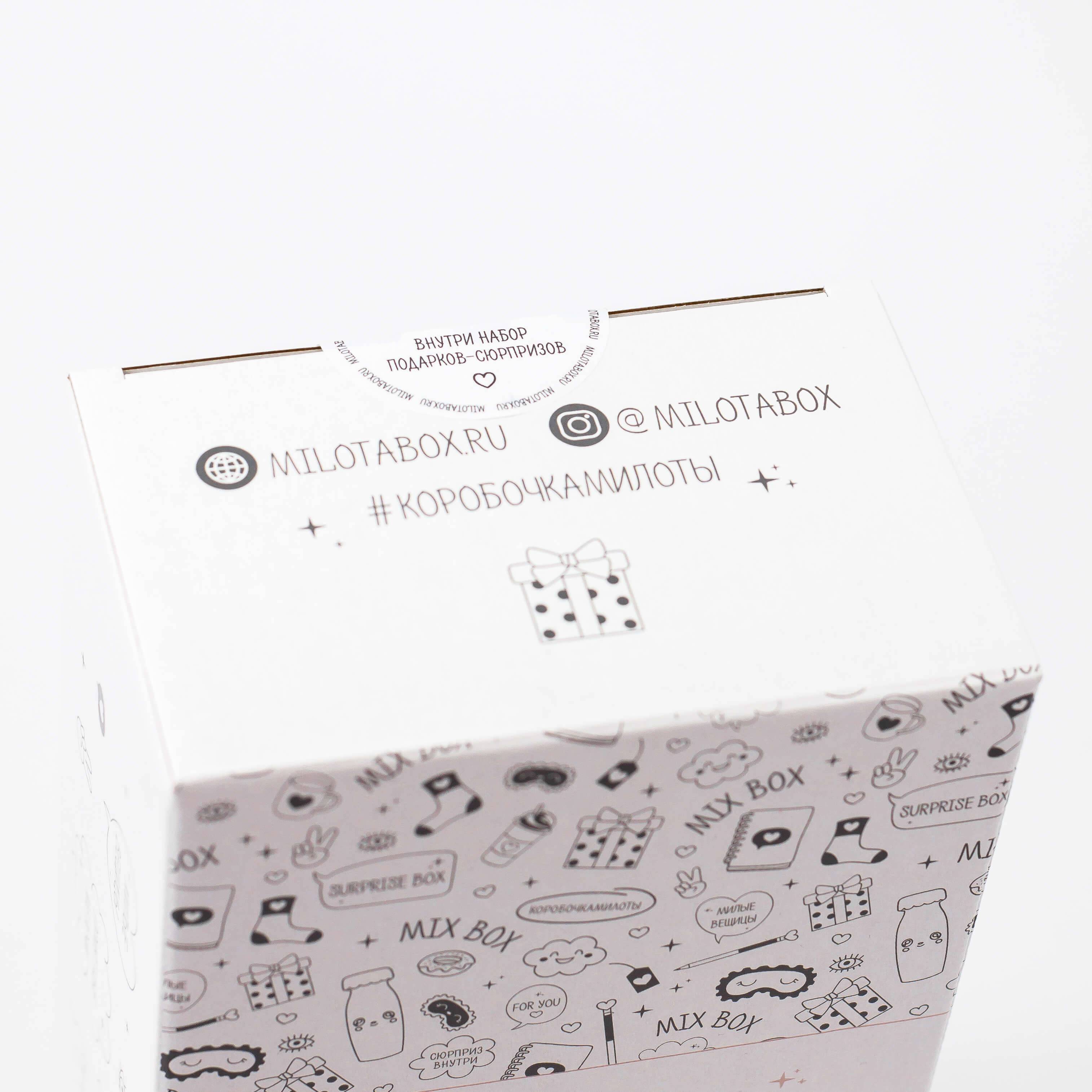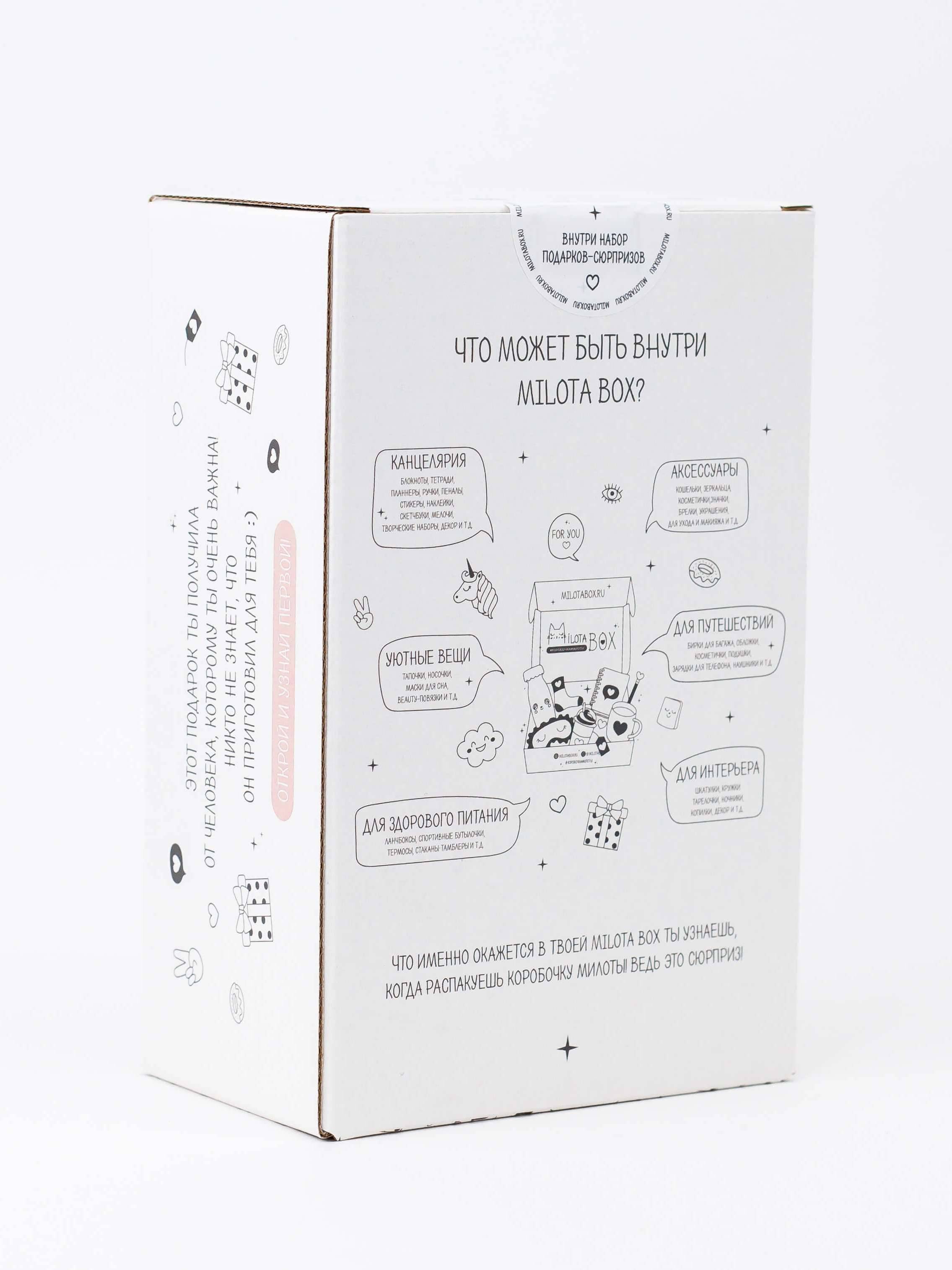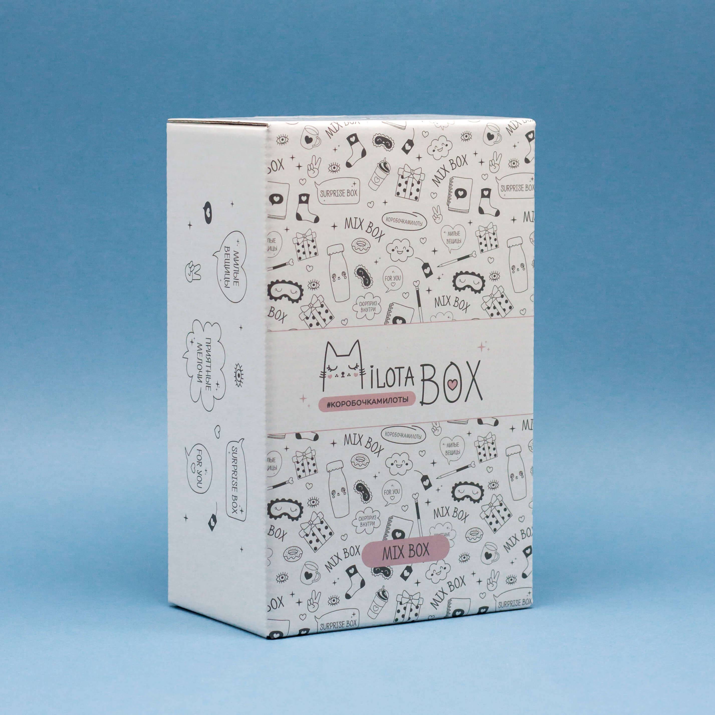 Каждая коробочка милоты наполнена необычными вещицами, которыми будет приятно пользоваться в повседневной жизни: милая канцелярия, уютные товары для дома, стильные аксессуары, предметы для здорового образа жизни и приятные мелочи. Внутри Milota BOX находится до 8 сюрпризов, упакованных в стилизованную подарочную бумагу тишью. Коробочка из плотного, дизайнерского картона. Размер коробочки: 22 х 14 х 9 см. Общий вес: 550 гр.