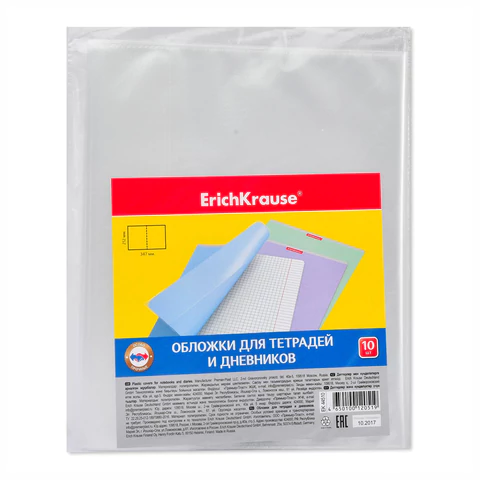 Обложки для тетрадей и дневников, 212х347 мм, полипропилен, плотность 0,05 мкм - 10 шт.
