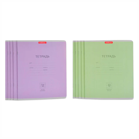 Тетрадь ученическая, 12 л., "Классика", фиолетовая обложка, косая линейка - 5 шт.
