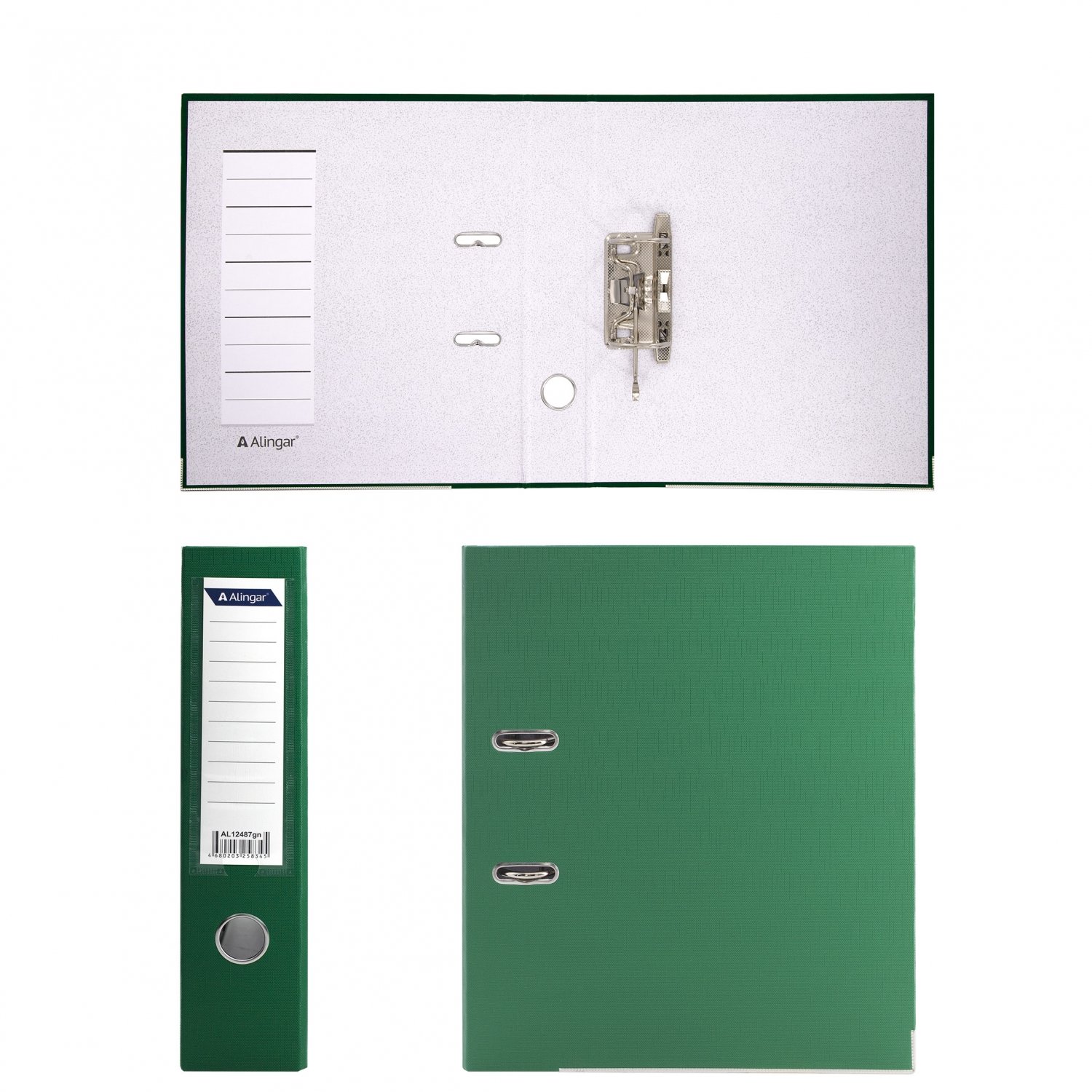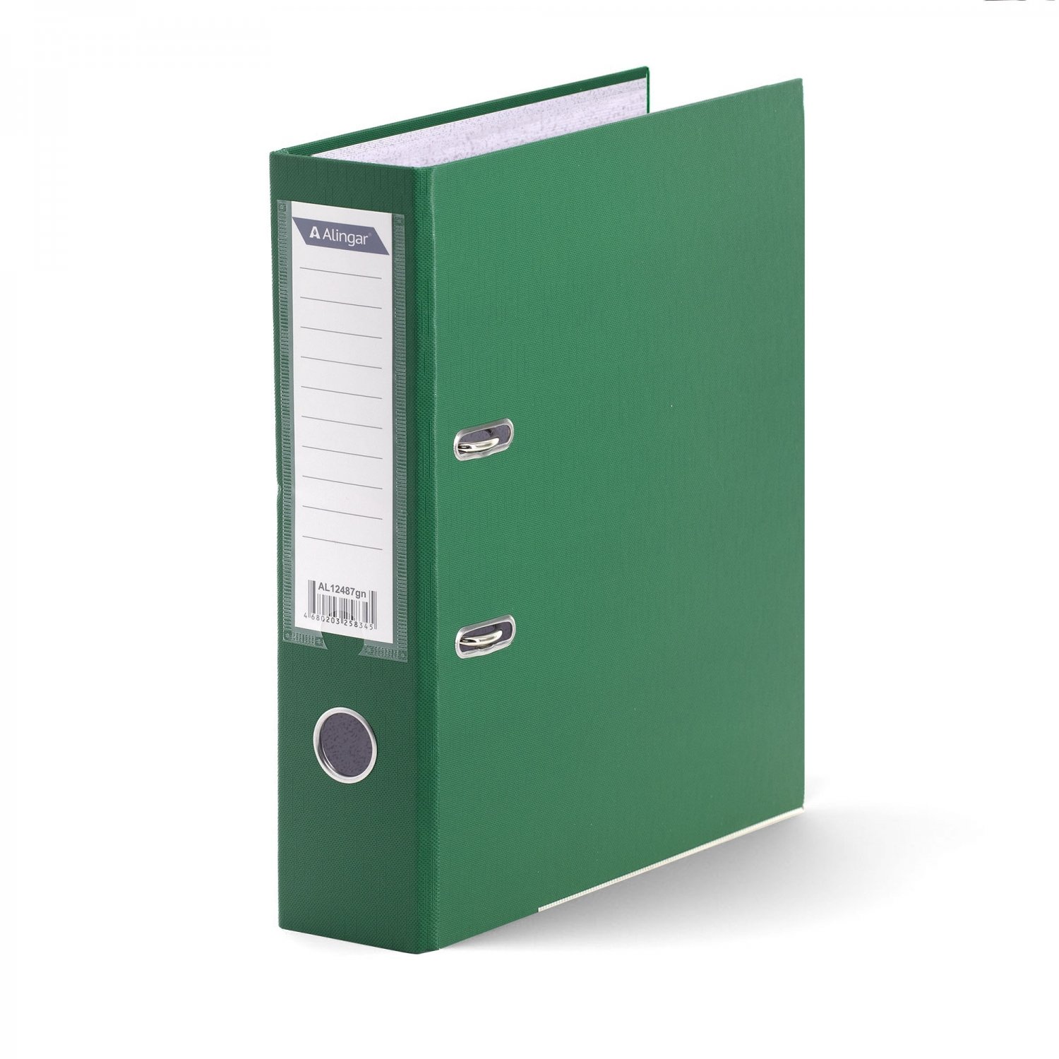 Папка-регистратор Alingar, А4, 70 мм, зеленый, ПВХ покрытие, фактура лен, карман на корешке, нижн. металл. кант, арочный механизм, неразборная