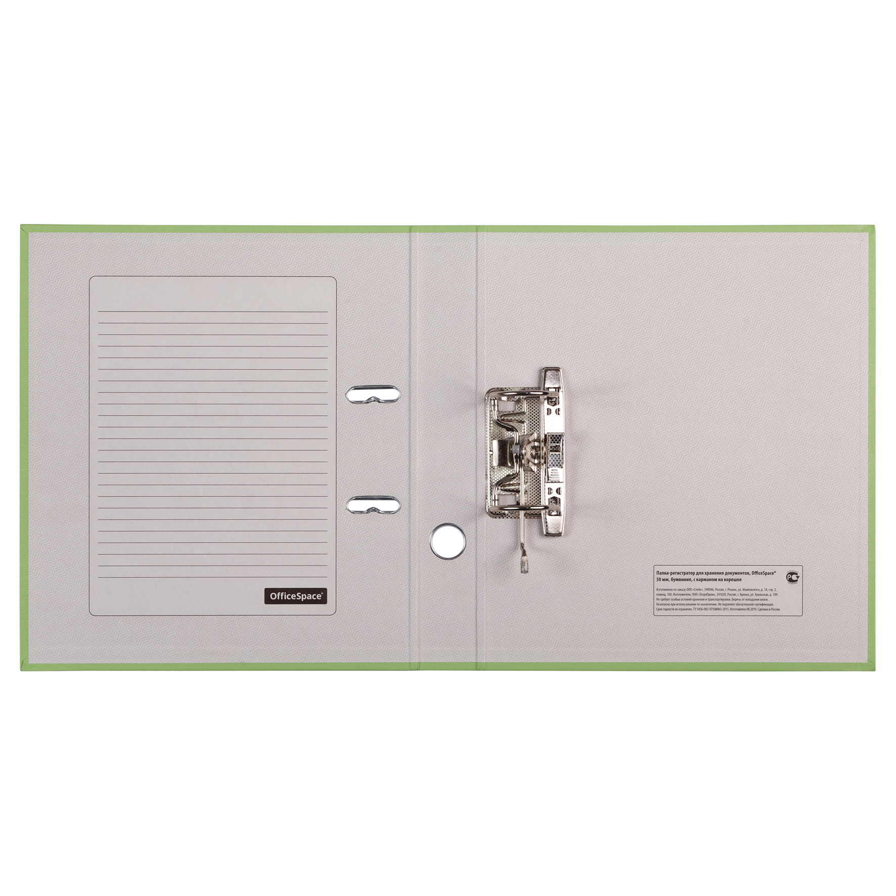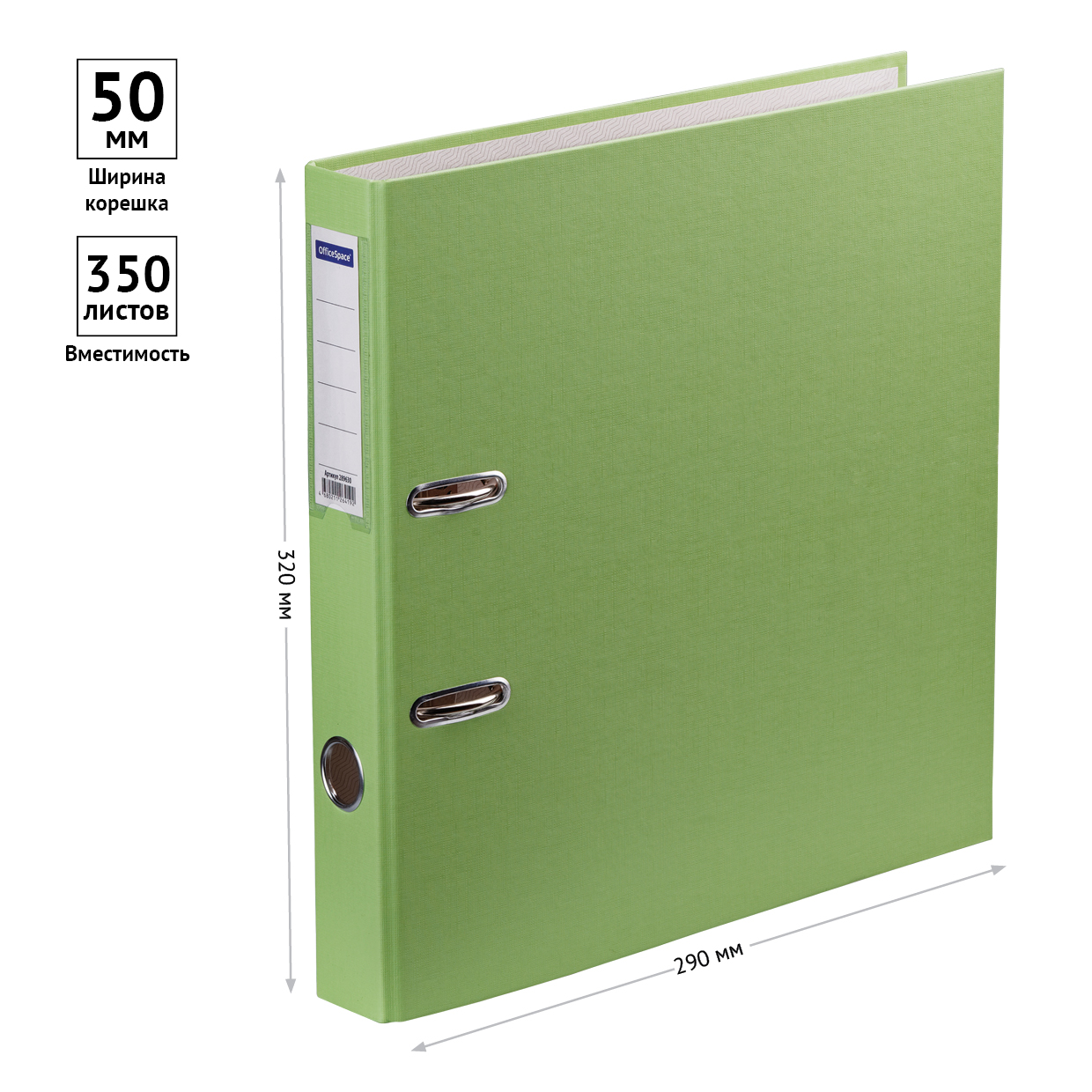 Папка-регистратор для хранения документов, металлический арочный механизм, покрытие бумвинил, карман на корешке папки. Формат А4+. Размер составляет 285*320*50мм. Ширина корешка 50 мм. Цвет фисташковый.