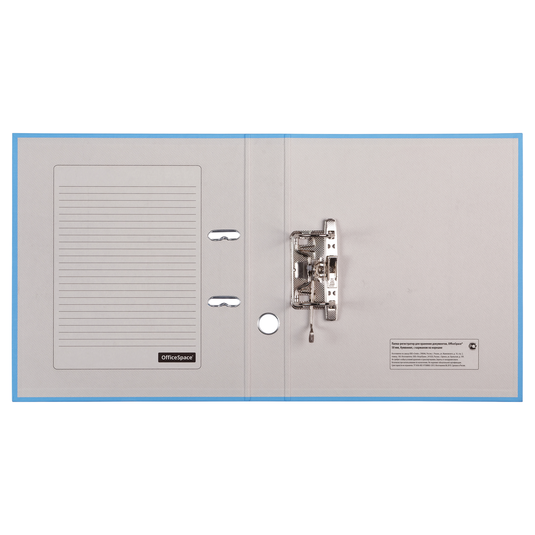 Папка-регистратор для хранения документов, металлический арочный механизм, покрытие бумвинил, карман на корешке папки. Размер составляет 285*320*50мм. Формат А4. Ширина корешка 50 мм. Цвет голубой.