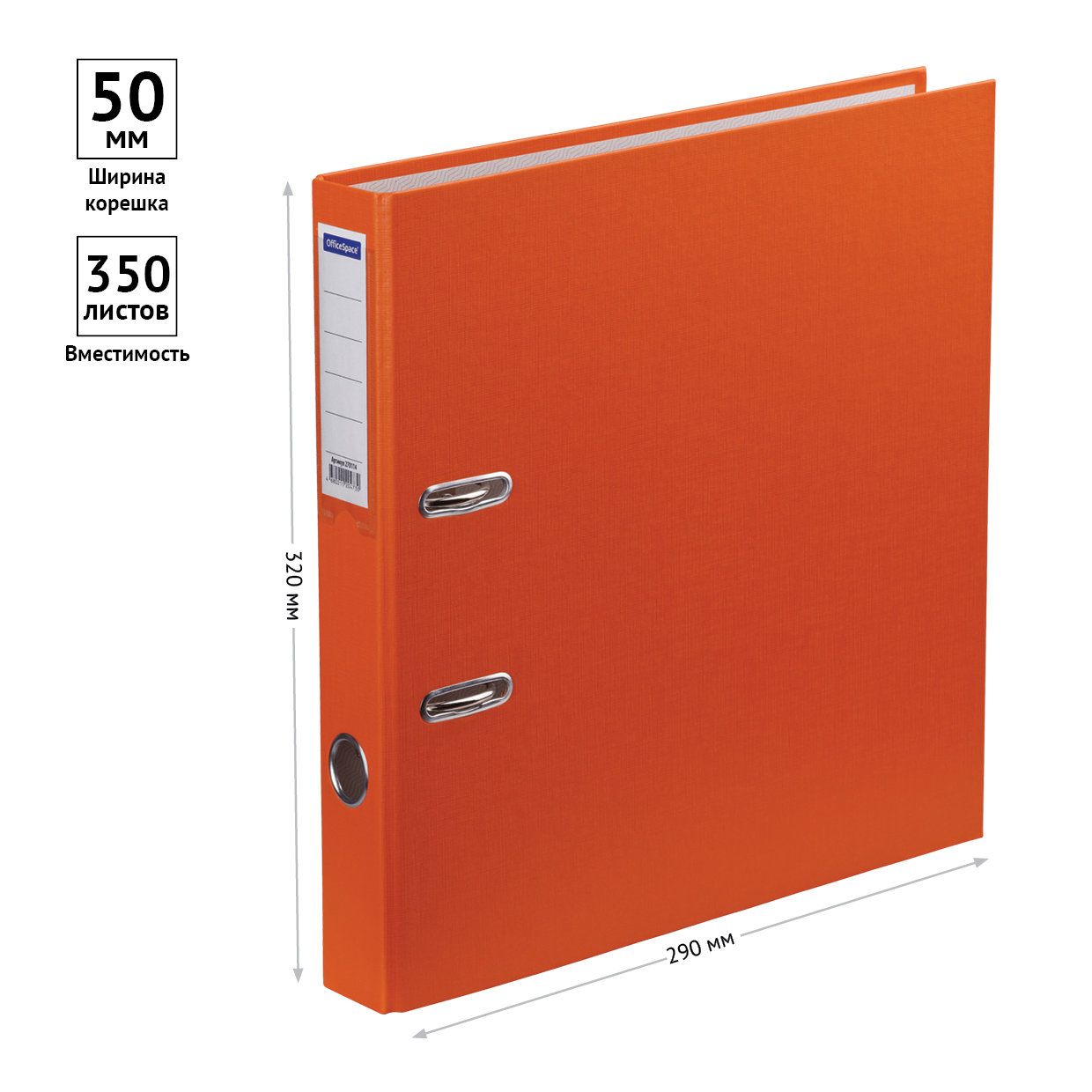 Папка-регистратор для хранения документов, металлический арочный механизм, покрытие бумвинил, карман на корешке папки. Размер составляет 280*310*50мм. Формат А4+. Ширина корешка 50 мм. Цвет оранжевый. • Размер: 280*310*50мм;