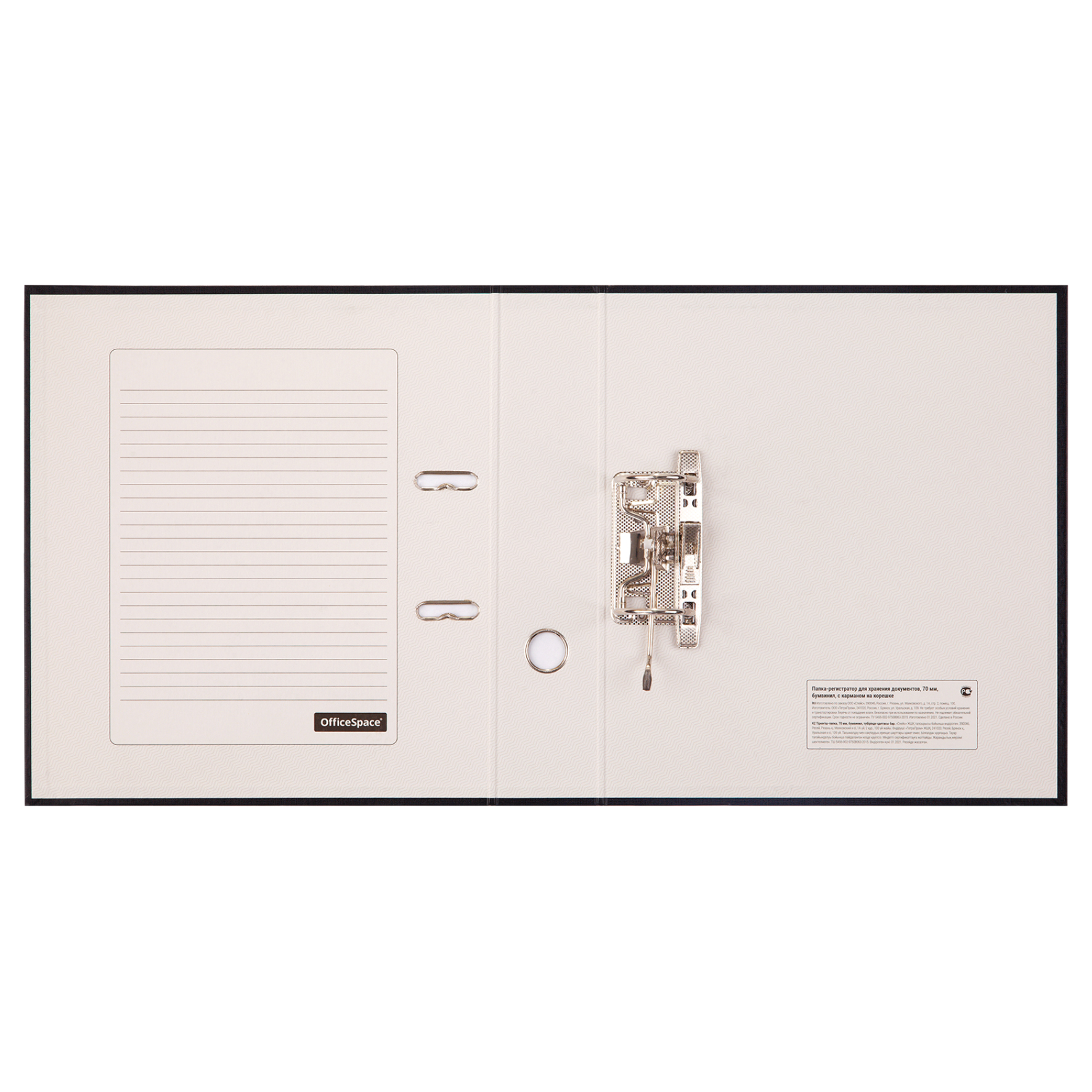 Папка-регистратор для хранения документов, металлический арочный механизм, покрытие бумвинил, карман на корешке папки. Формат А4+. Размер составляет 280*310*70мм. Ширина корешка 70 мм. Цвет чёрный.