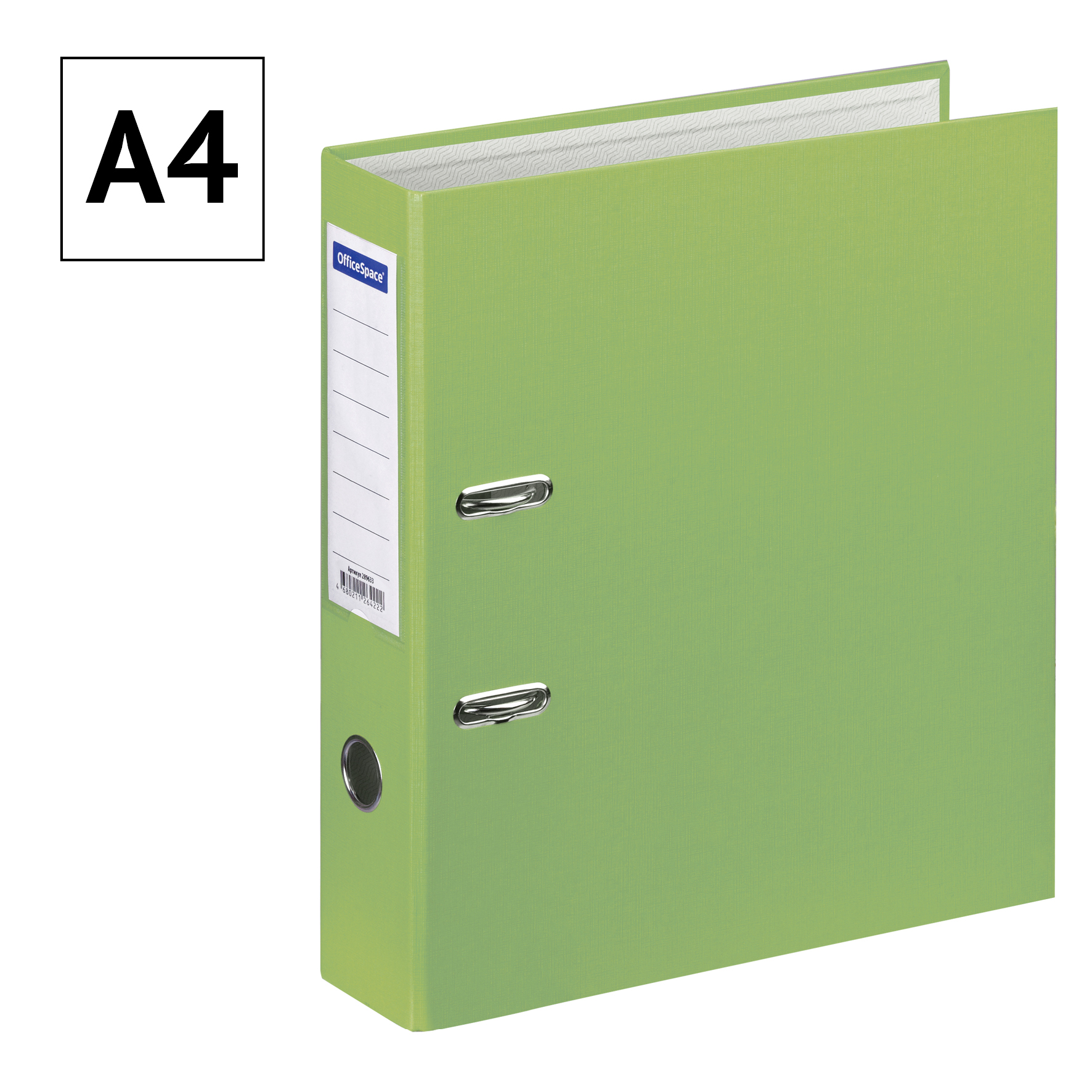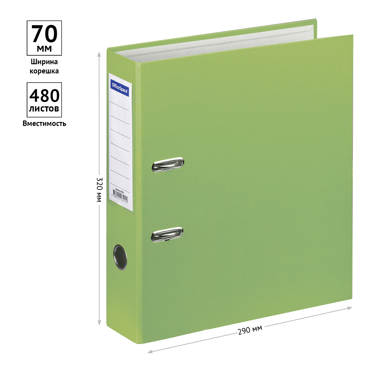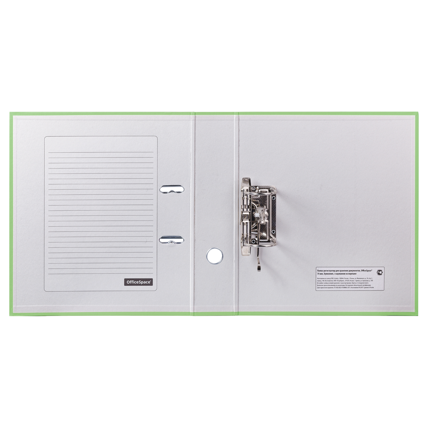 Папка-регистратор для хранения документов, металлический арочный механизм, покрытие бумвинил, карман на корешке папки. Формат А4+. Размер составляет 285*320*50мм. Ширина корешка 70 мм. Цвет фисташковый.