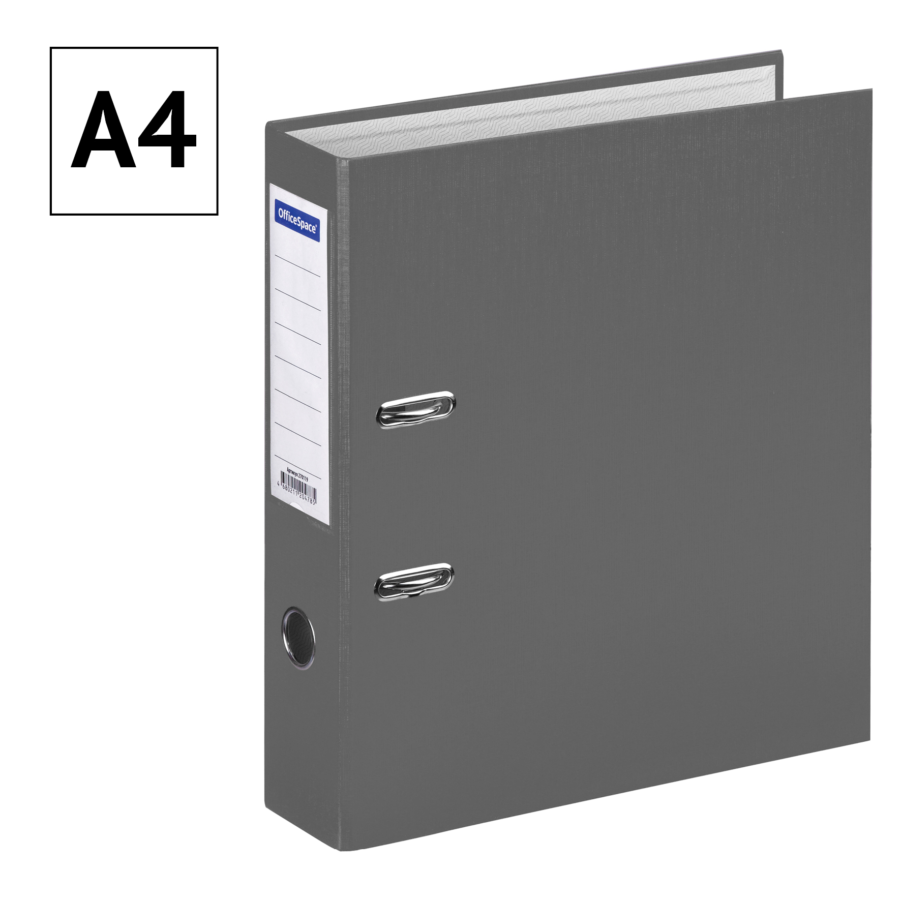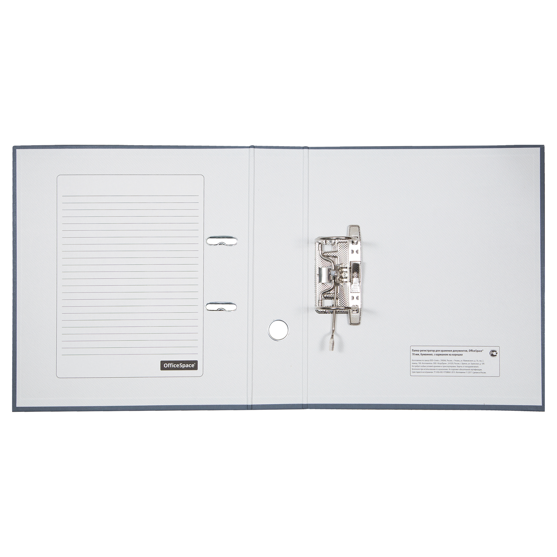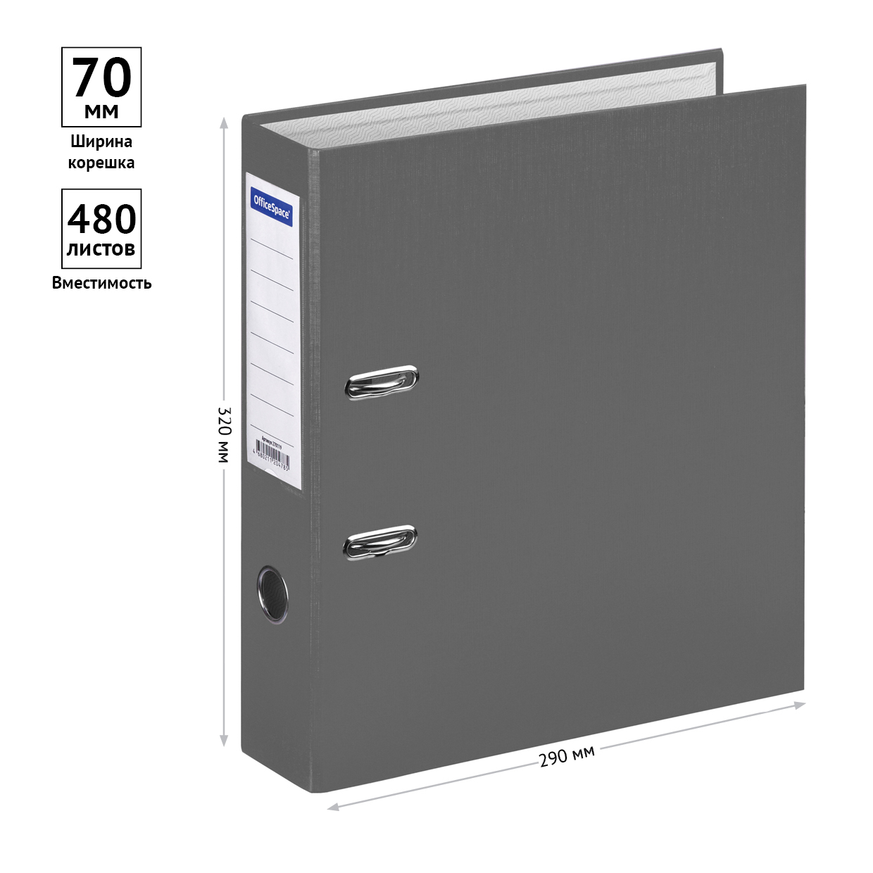Папка-регистратор для хранения документов, металлический арочный механизм, покрытие бумвинил, карман на корешке папки. Формат А4+. Размер составляет 280*310*70мм. Ширина корешка 70 мм. Цвет серый.