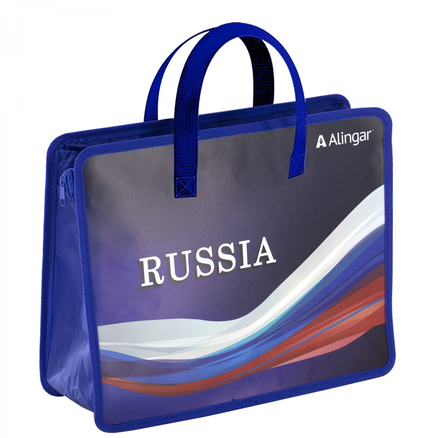 Папка с ручками 1 отделение, А4 265х335х120мм, Alingar, пластик, ручки тесьма, дизайн с двух сторон, молния сверху, "Russia"