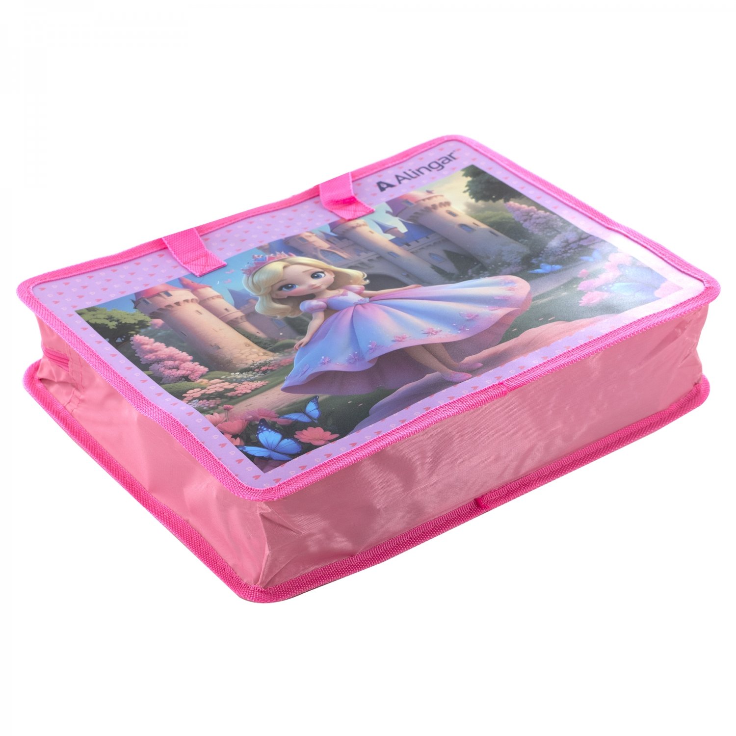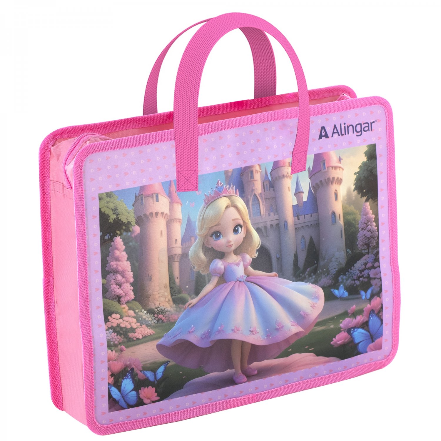 Папка с ручками 1 отделение, А4 265х335х90мм, Alingar, пластик, ручки тесьма, дизайн с двух сторон, молния сверху, "Принцесса"