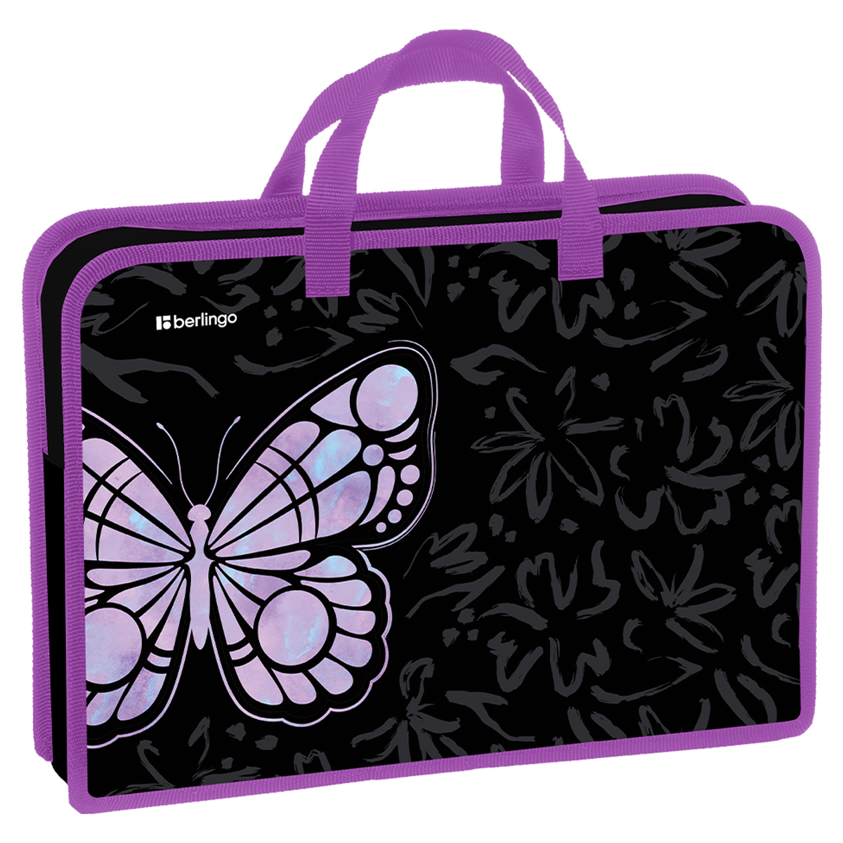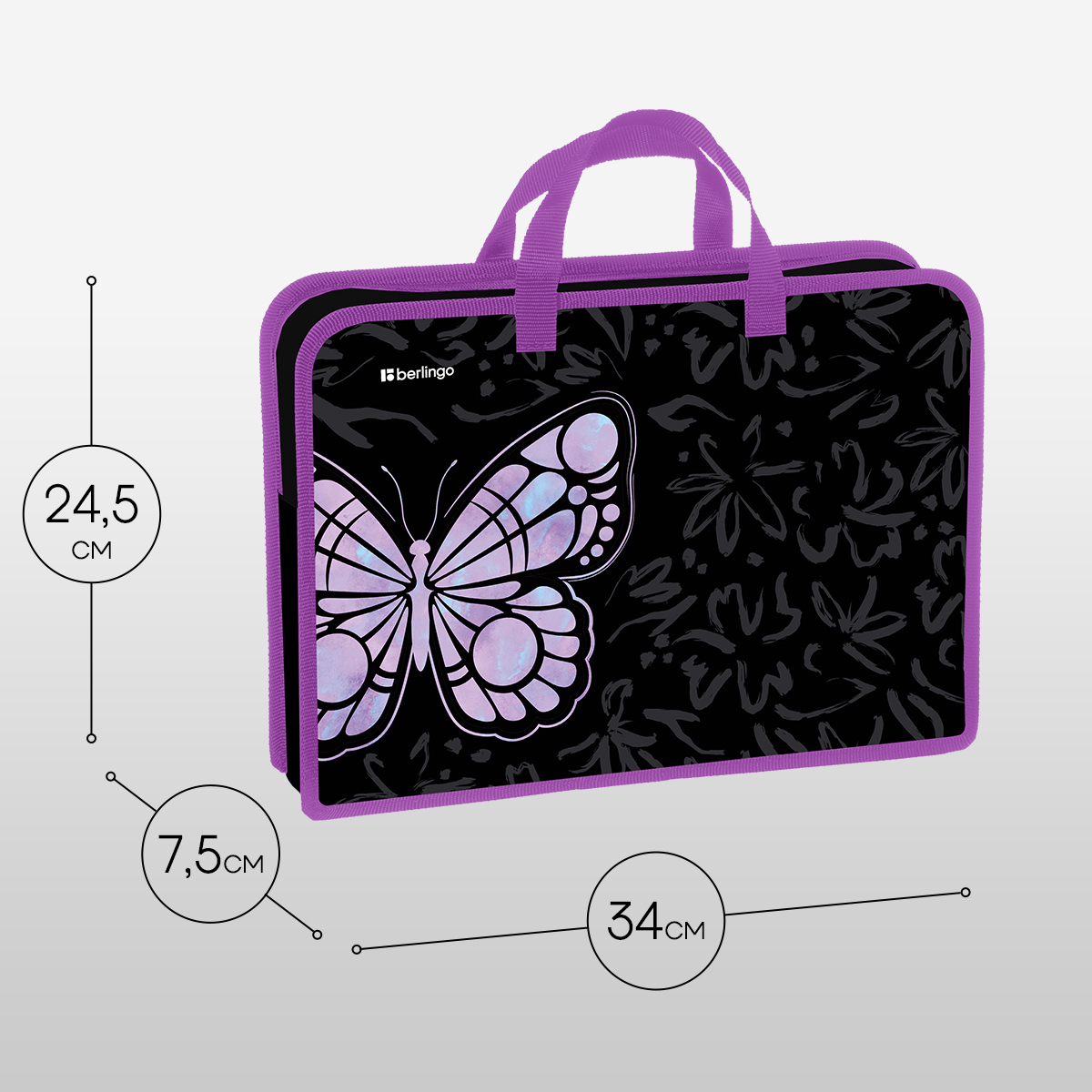 Школьная папка Berlingo серии Butterfly Effect c ручками и одним отделением поможет поддерживать аккуратный внешний вид тетрадей, альбомов и учебных пособий. Формат изделия — А4 (340*245*75 мм). Папка изготовлена из высококачественного пластика, который защищает содержимое от влаги, грязи и замятия. Края укреплены контрастной тканевой окантовкой. Застёжка-молния расположена по верхнему краю изделия. Наличие ручек из тесьмы обеспечивает удобную транспортировку. Оформление изделия обязательно понравится ребёнку.
