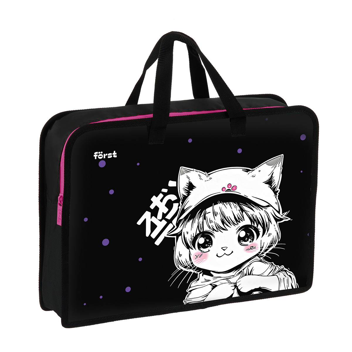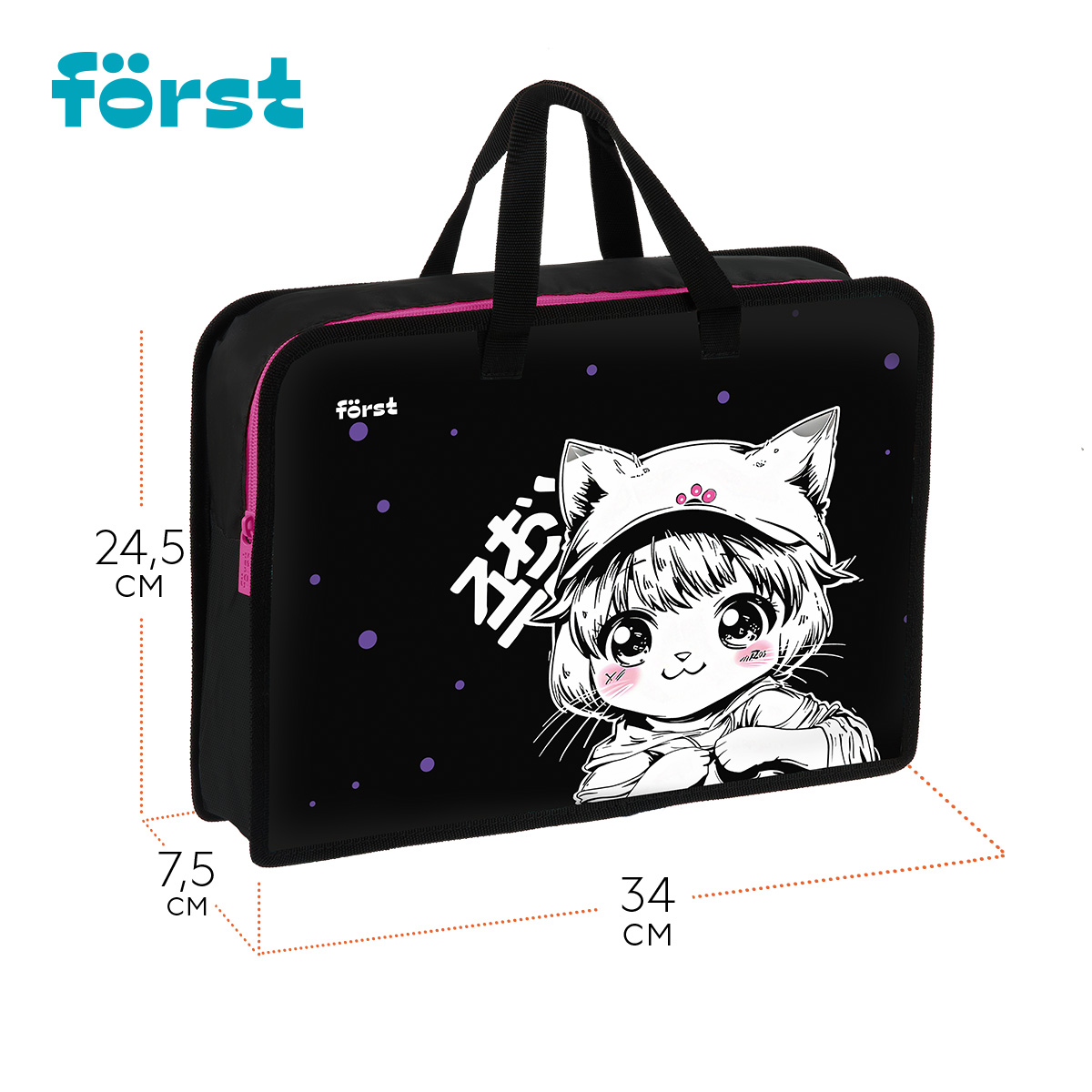 Школьная папка Först серии Plush Dream c ручками и одним отделением поможет поддерживать аккуратный внешний вид тетрадей, альбомов и учебных пособий. Формат изделия — А4 (340*245*75 мм). Благодаря увеличенной ширине в одно отделение поместится всё необходимое, в том числе и стакан-непроливайка. Папка изготовлена из качественного пластика, который защищает содержимое от влаги, грязи и замятия. Края укреплены тканевой окантовкой. Застёжка-молния расположена по верхнему краю изделия. Ручки сделаны из тесьмы, поэтому отличаются прочностью и не порвутся в неподходящий момент. Оформление изделия обязательно понравится ребёнку.
