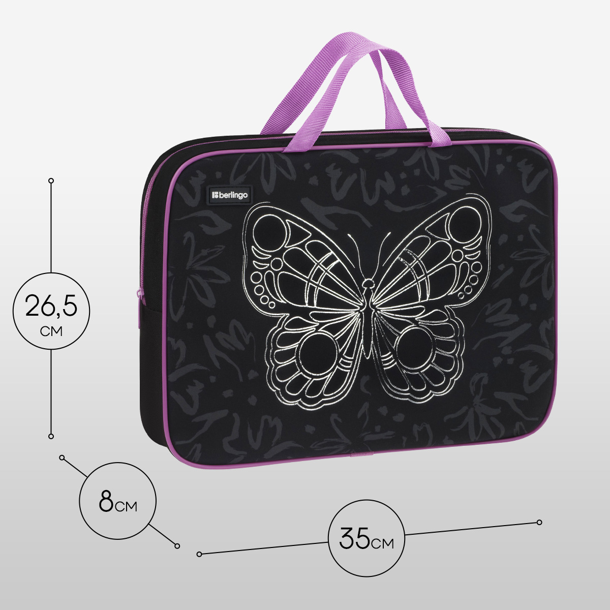 Папка с ручками на молнии для тетрадей Berlingo Butterfly Effect формата А4 станет стильным помощником в учёбе, предназначена для хранения документов. Изделие размера 350*265*80 мм имеет одно отделение и карман внутри. Застежка-молния сверху надежно защищает содержимое от грязи и влаги. Наличие ручек обеспечивает удобную транспортировку. Папка предназначена для тетрадей, альбомов и прочих канцелярских принадлежностей, имеет увеличенную ширину торцевой стороны, что позволяет вместить все необходимое. Оформление папки непременно понравится девочке.