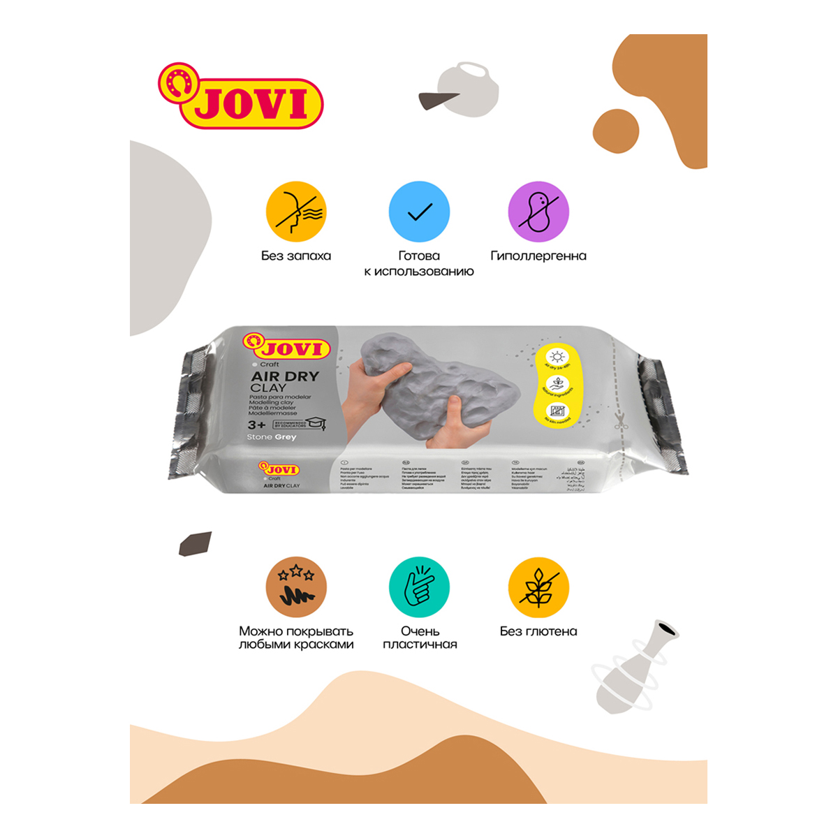 Паста для моделирования JOVI, отвердевающая, серый, 250г, вакуумный пакет