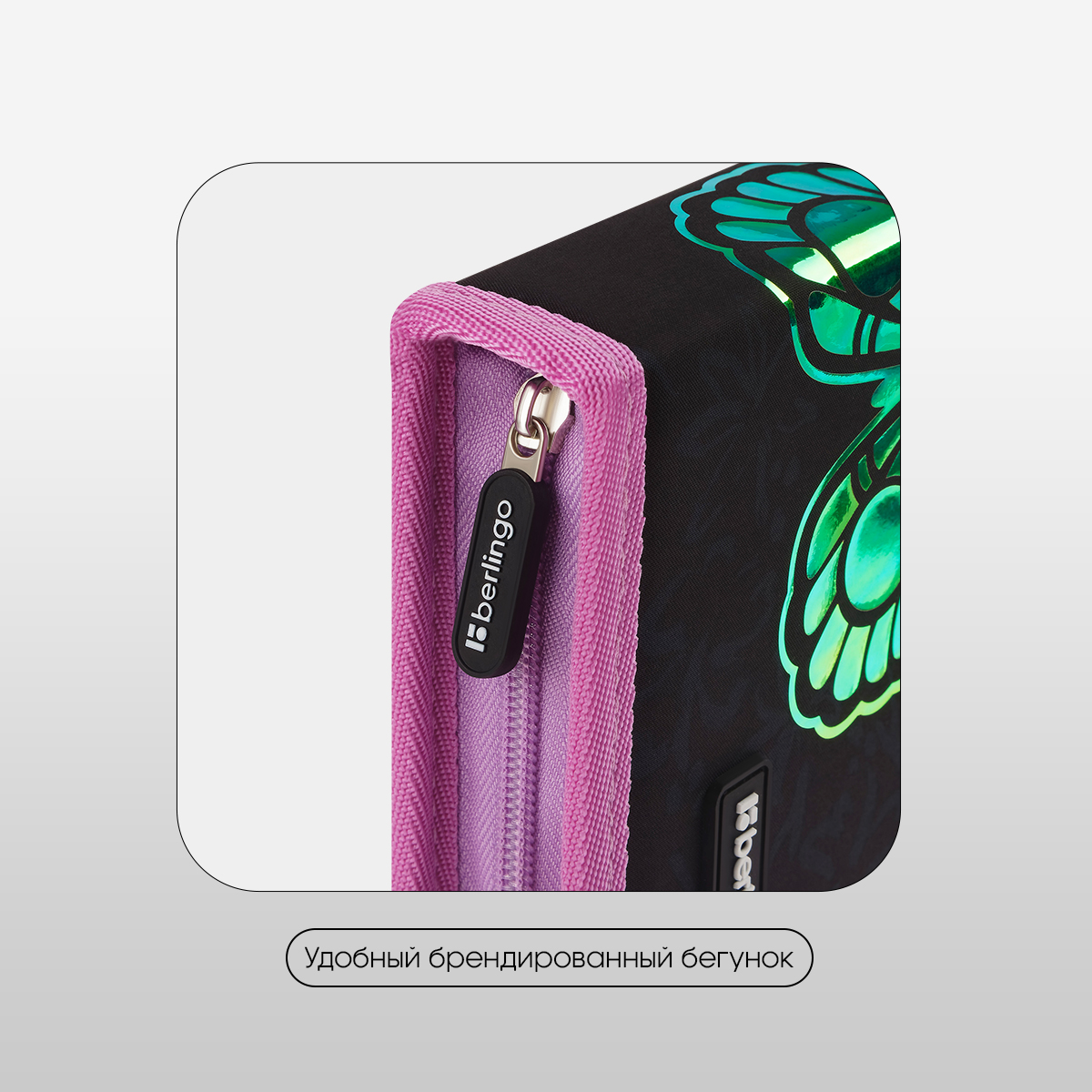 Пенал 1 отделение, 200*140*40 Berlingo "Butterfly Effect", дополнительная откидная секция, полиэстер