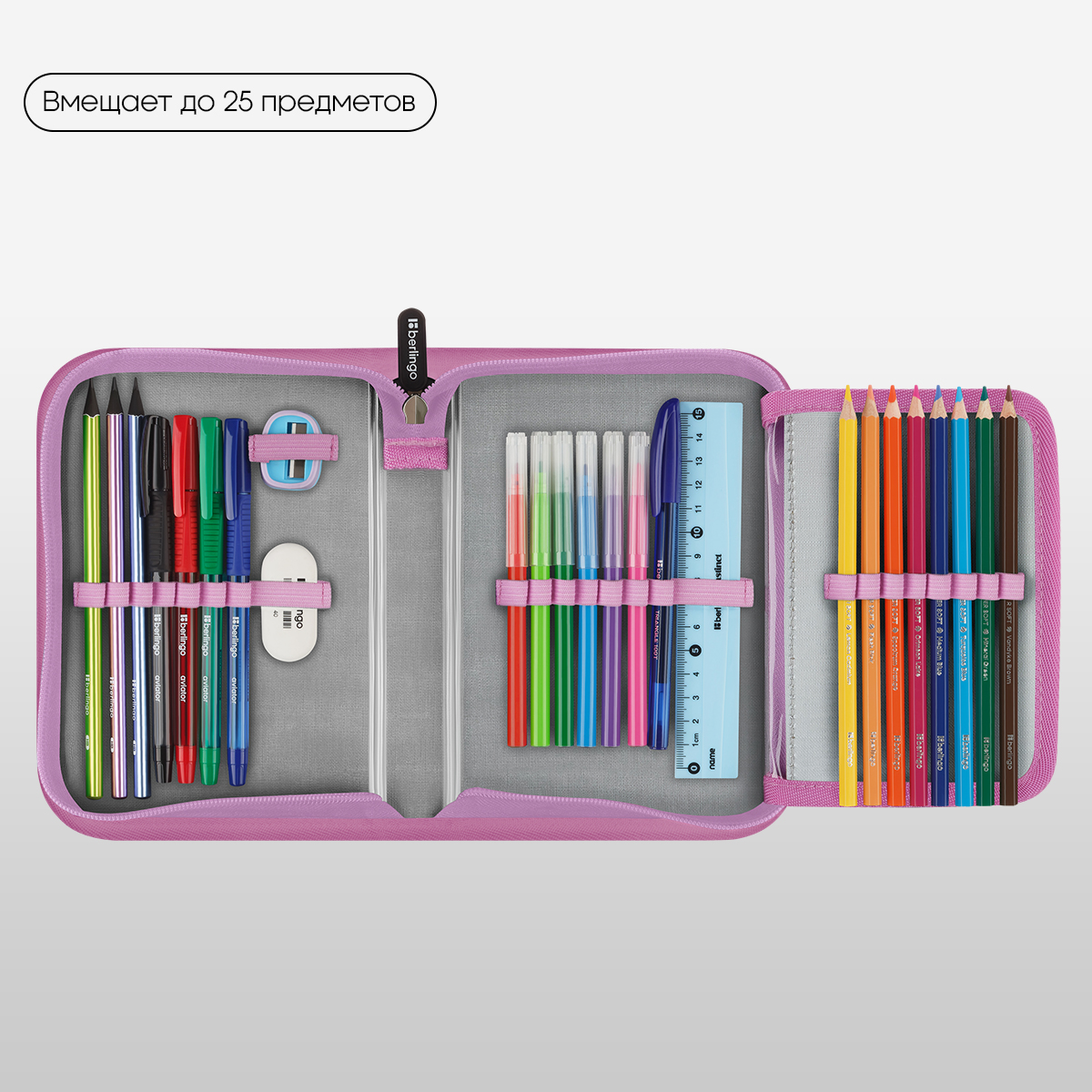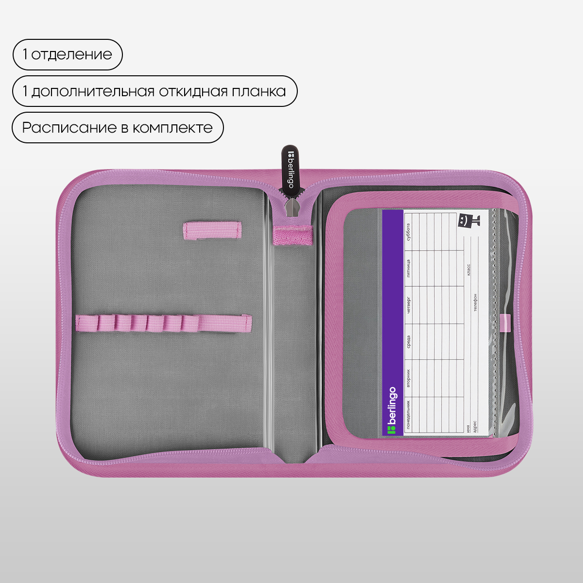 Каркасный пенал Berlingo помогает школьнику хранить канцелярские принадлежности в одном месте. Изделие размером 200*140*40 мм не занимает много места в рюкзаке. В одно отделение помещается 25 предметов. За счёт креплений-резиночек для канцтоваров внутри пенала легко поддерживать порядок. Одна откидная планка увеличивает вместимость изделия и позволяет всегда держать расписание уроков перед глазами. Благодаря крупному бегунку ребёнку удобно открывать пенал на молнии.