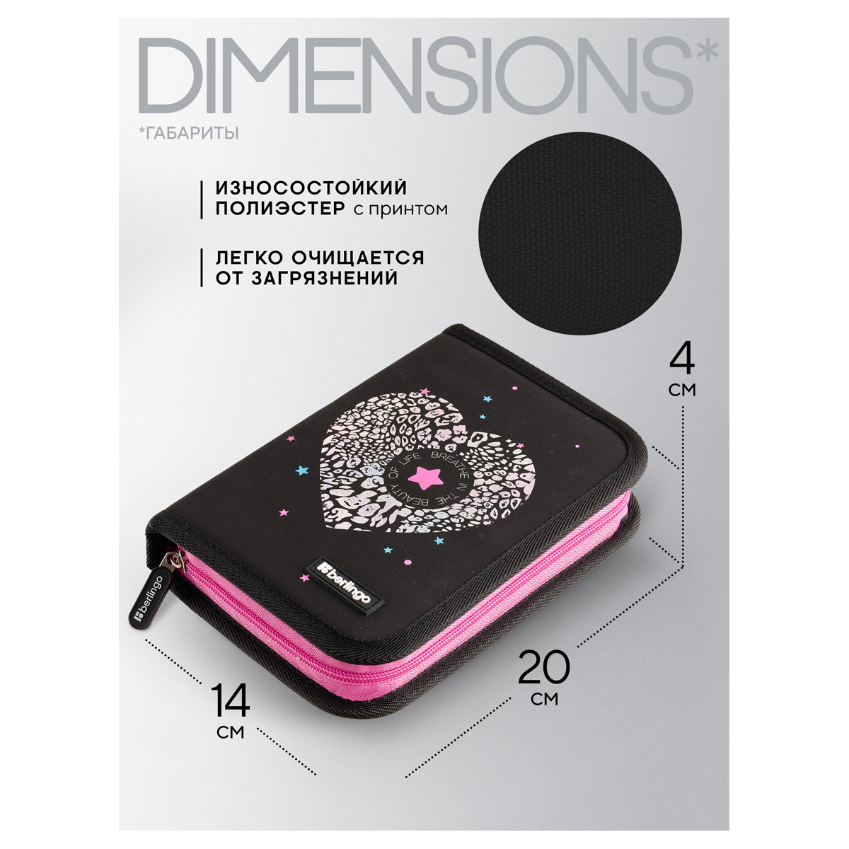 Каркасный пенал Berlingo помогает школьнику хранить канцелярские принадлежности в одном месте. Изделие размером 200*140*40 мм не занимает много места в рюкзаке. За счёт креплений-резиночек для канцтоваров внутри пенала легко поддерживать порядок. Две откидные планки увеличивают вместимость изделия и позволяют всегда держать расписание уроков перед глазами. Благодаря крупному бегунку ребёнку удобно открывать пенал на молнии.