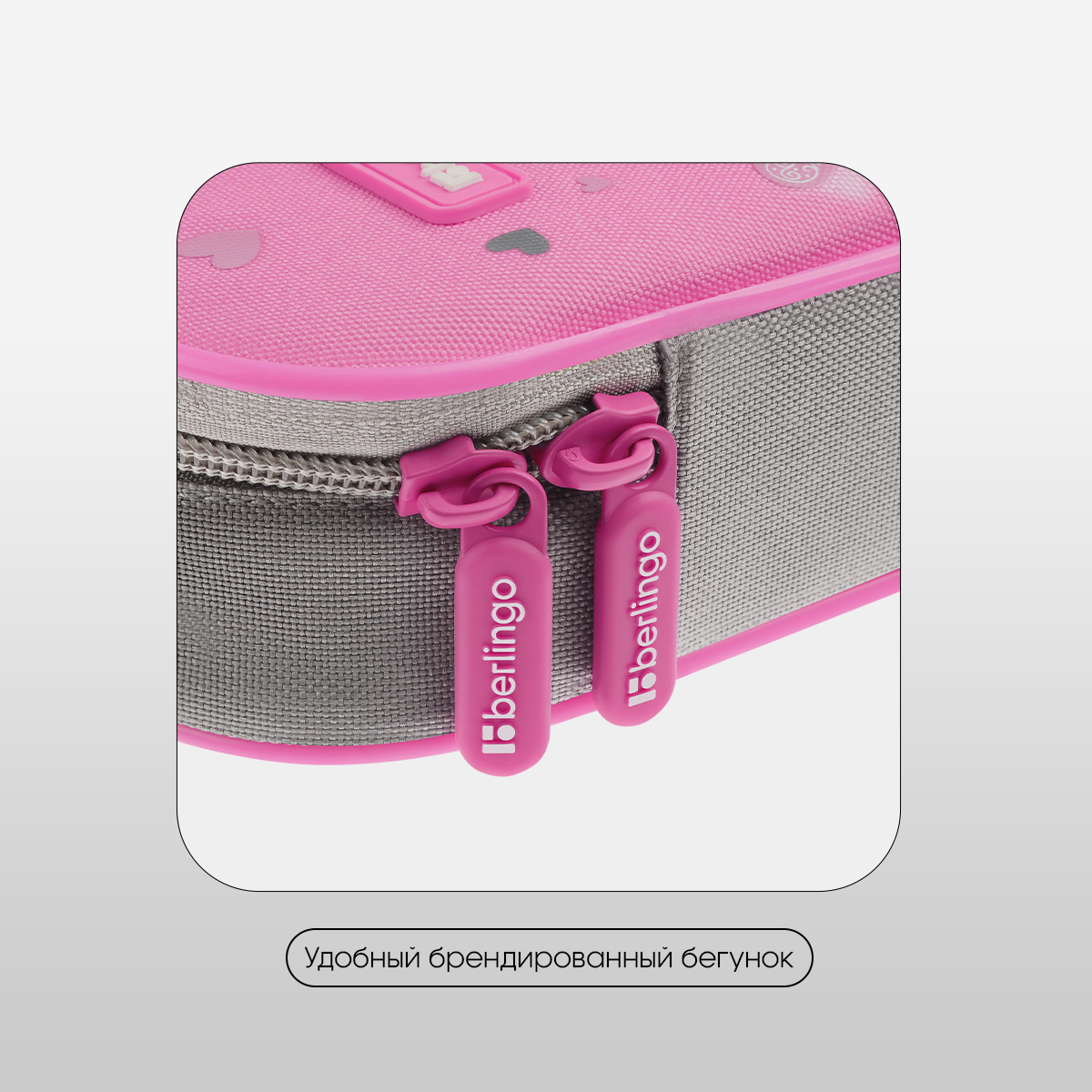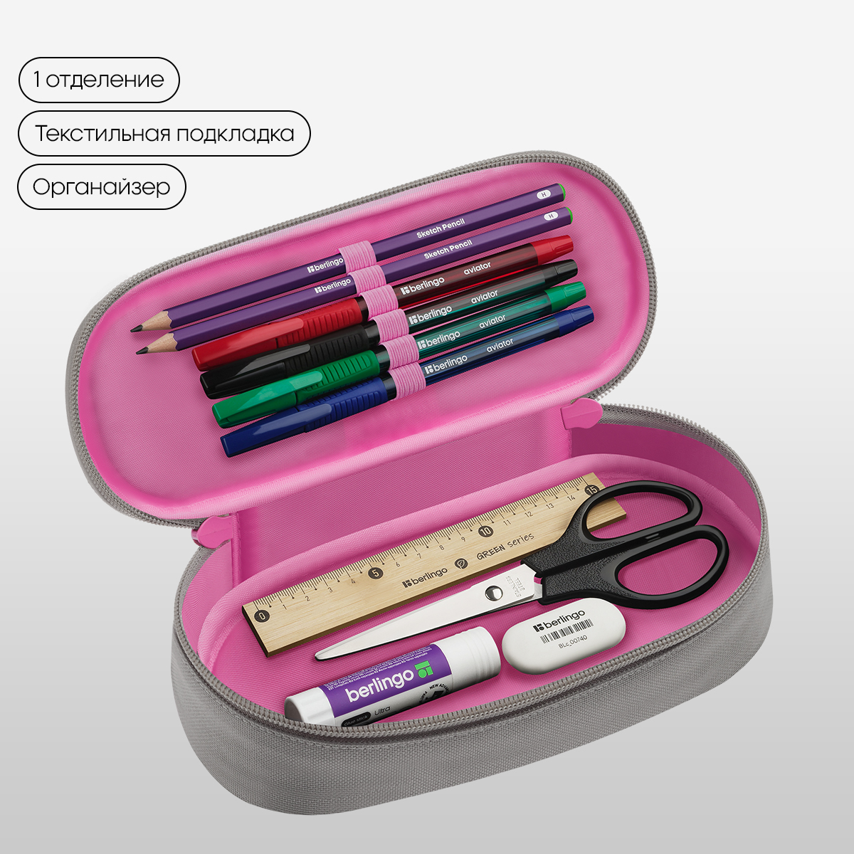 Пенал-футляр школьный корпусный Berlingo Dreamy Bunny поможет аккуратно хранить канцелярские принадлежности. Изделие овальной формы размером 220*90*45 мм имеет одно вместительное отделение на молнии. Материал лицевой поверхности и подкладки – полиэстер. На верхней откидной крышке расположены крепления-резиночки для канцелярских принадлежностей. Дизайн мягкого пенала-футляра сочетает розовый и серый цвета и имеет оригинальный рисунок, который понравится девочкам. Поставляется без наполнения. Упакован в индивидуальный пакет.