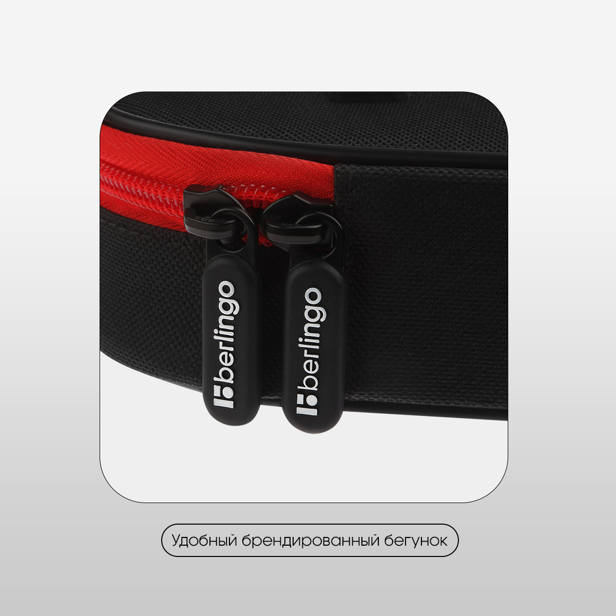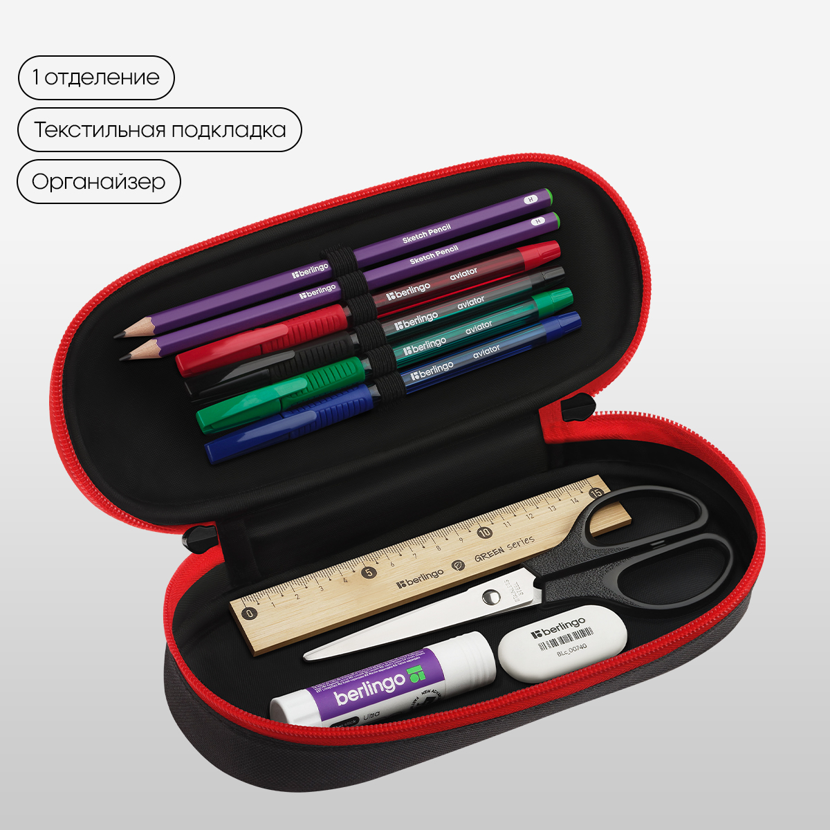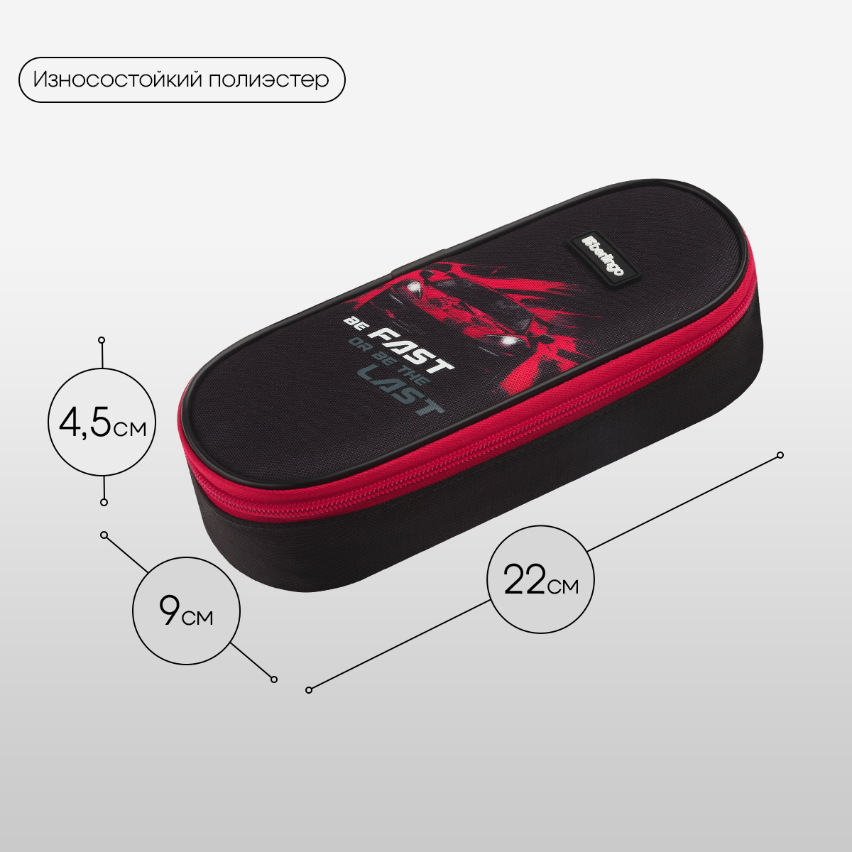 Пенал-футляр школьный корпусный Berlingo Fast Track поможет аккуратно хранить канцелярские принадлежности. Изделие овальной формы размером 220*90*45 мм имеет одно вместительное отделение на молнии. Материал лицевой поверхности и подкладки – полиэстер. На верхней откидной крышке расположены крепления-резиночки для канцелярских принадлежностей. Мягкий пенал-футляр чёрного цвета имеет оригинальный рисунок, который понравится мальчикам и девочкам. Поставляется без наполнения. Упакован в индивидуальный пакет.