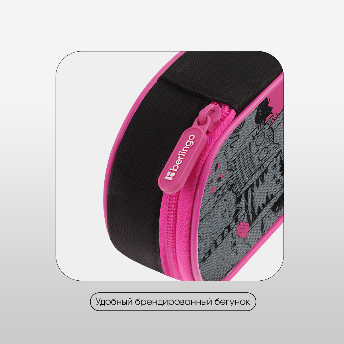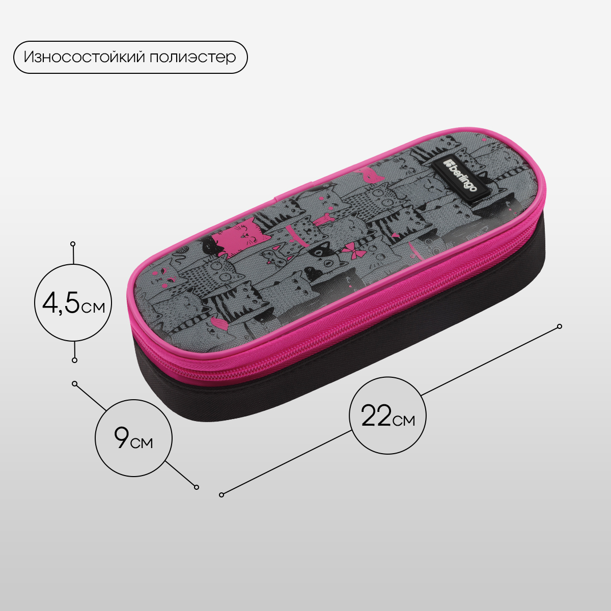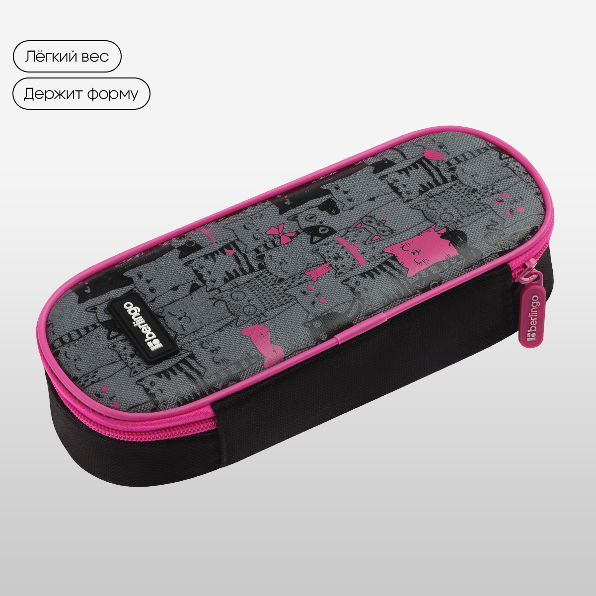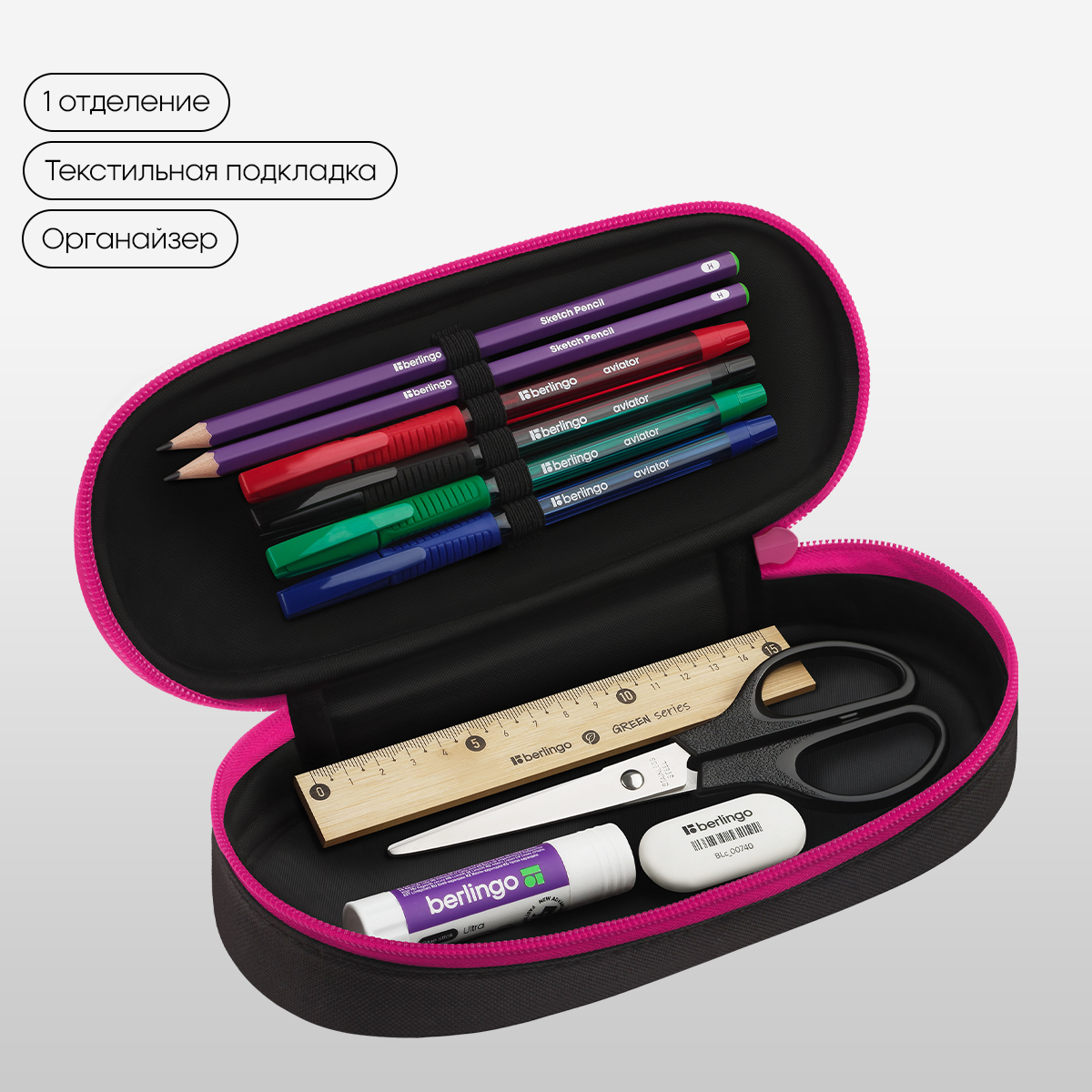 Пенал-футляр школьный корпусный Berlingo имеет одно отделение. Материал лицевой поверхности и подкладки – полиэстер. На верхней откидной крышке расположены крепления-резиночки для канцелярских принадлежностей. Застежка – молния. Поставляется без наполнения. Индивидуальная упаковка - пакет.
