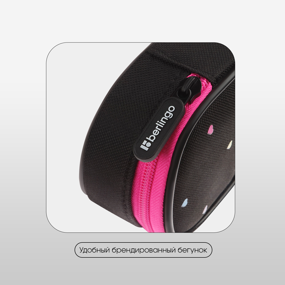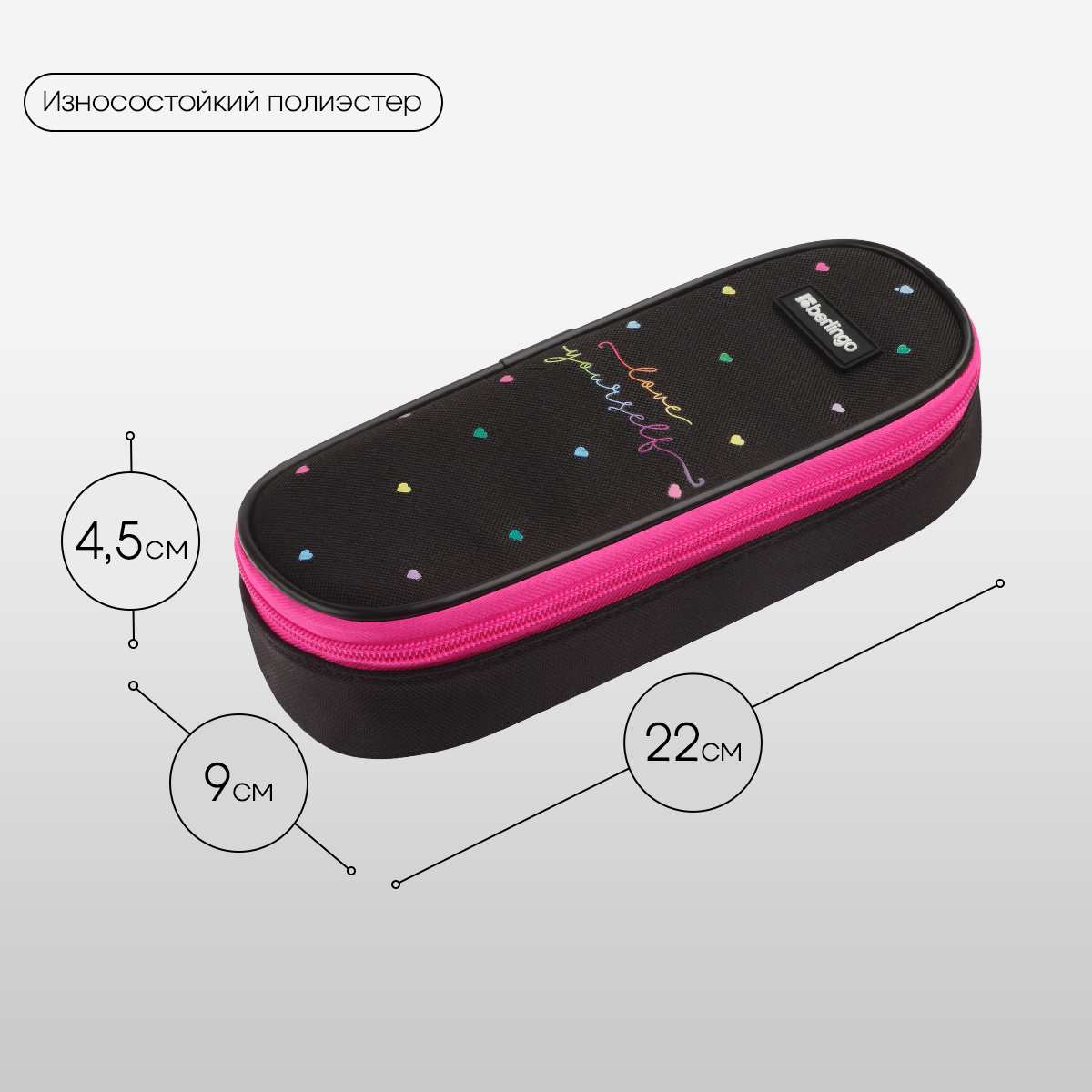 Пенал-футляр школьный корпусный Berlingo имеет одно отделение. Материал лицевой поверхности и подкладки – полиэстер. На верхней откидной крышке расположены крепления-резиночки для канцелярских принадлежностей. Застежка – молния. Поставляется без наполнения. Индивидуальная упаковка - пакет.