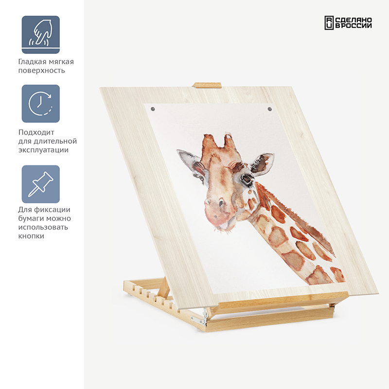 Планшеты из фанеры представляют собой жесткую основу для закрепления бумаги для чертежных и графических работ, выездов на пленэры. Планшет может быть закреплен на мольберте или этюднике. Планшет представляет собой лист клееной березовой фанеры первого сорта, закрепленный на жестком сосновом подрамнике. Фанера хорошо отшлифована, подходит даже для тонкой бумаги. Для закрепления бумаги можно использовать кнопки, поверхность планшета достатчоно мягкая для надежной фиксации, практически не повреждается и подходит для длительной эксплуатации. Планки подрамника надежно соединены металлическими скобами, фанера крепится к подрамнику под давлением, чтобы обеспечить мгновенную и прочную склейку.