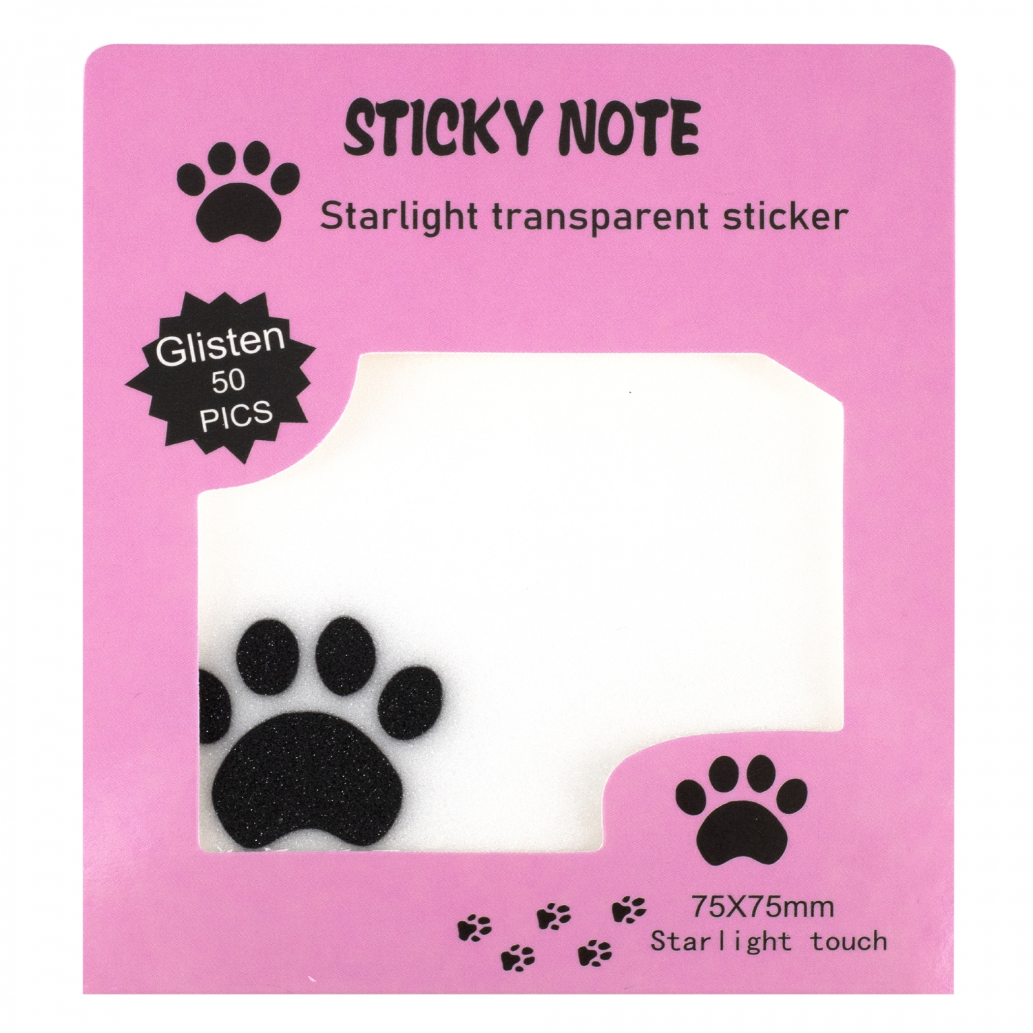 Прозрачные стикеры для заметок с клеевым краем, Alingar, 75 х 75 мм, 50 л., покрытие starlight touch, "Black PAW", лапка, роз, водонепрониц., европод.