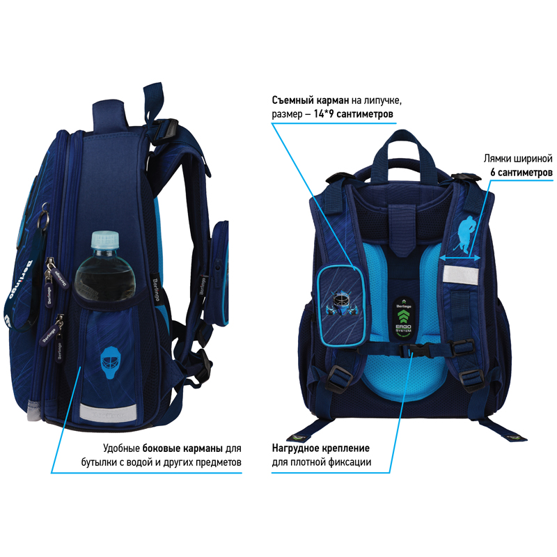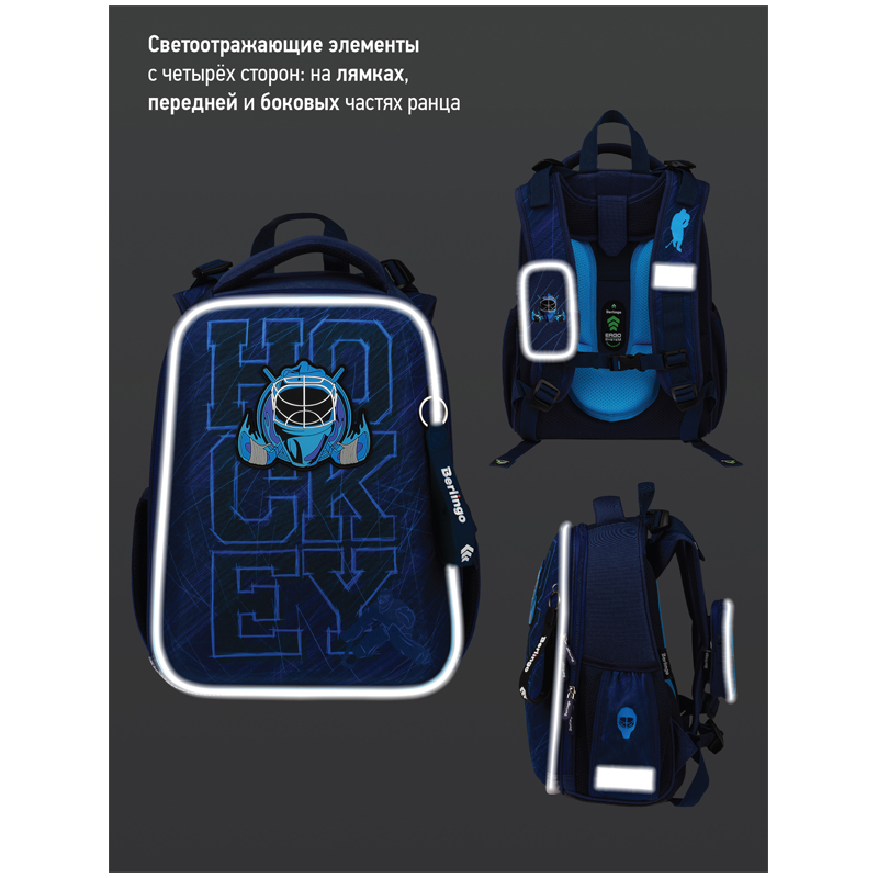 Эргономичный ранец для мальчика Berlingo серии Expert Ice team размером 37*28*16 см подходит для детей младшего и среднего школьного возраста. Модель выполнена из экологичного ЭВА-материала с покрытием из высокопрочной нейлоновой ткани кордура, которая обладает водоотталкивающими свойствами и легко чистится.