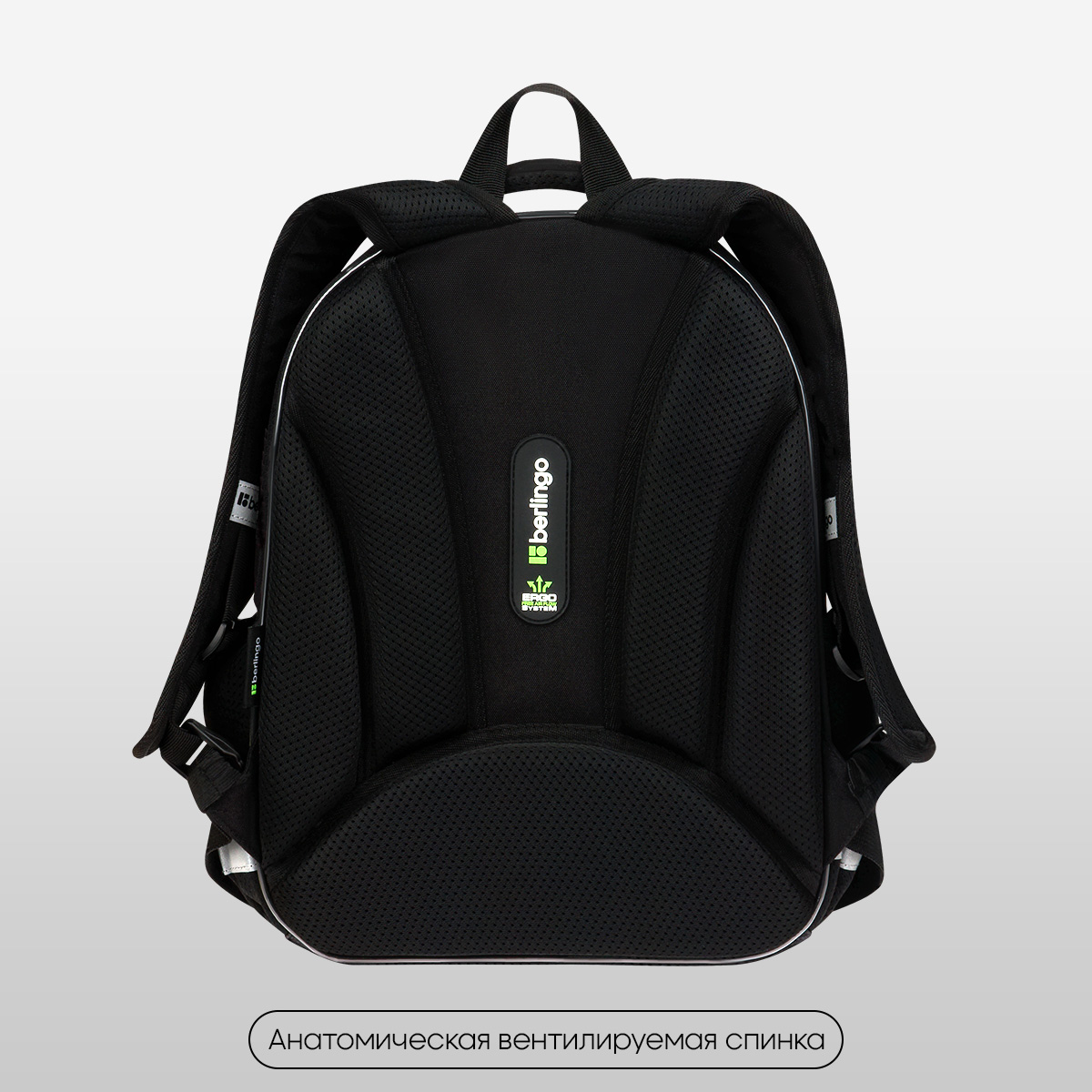 Благодаря анатомической вентилируемой спинке, а также регулируемым по длине лямкам и нагрудному креплению ранец плотно фиксируется на спине ребенка, равномерно распределяется нагрузка и сохраняется правильная осанка. Дно выполнено из водонепроницаемого материала с пластиковыми ножками для защиты содержимого от влаги. Ранец оснащен плотной ручкой и петлей для подвешивания. Световозвращающие элементы на лямках, передней и боковой частях ранца обеспечивают безопасность в темное время суток. Вес 880 г.